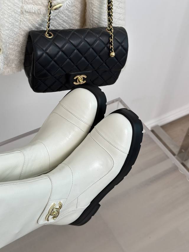 厂价 Chane*|小香23C秋冬新品 双C书包扣厚底长靴系列 鞋面采用进口小牛皮 内里垫脚都是丝绸羊皮 原版开模大底 跟高:3.5Cm Size:35-39