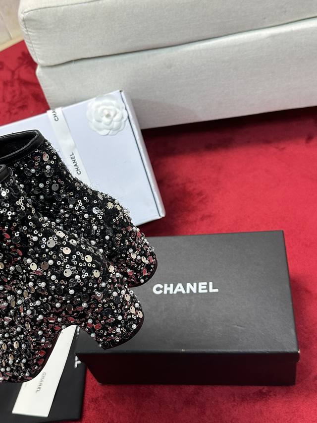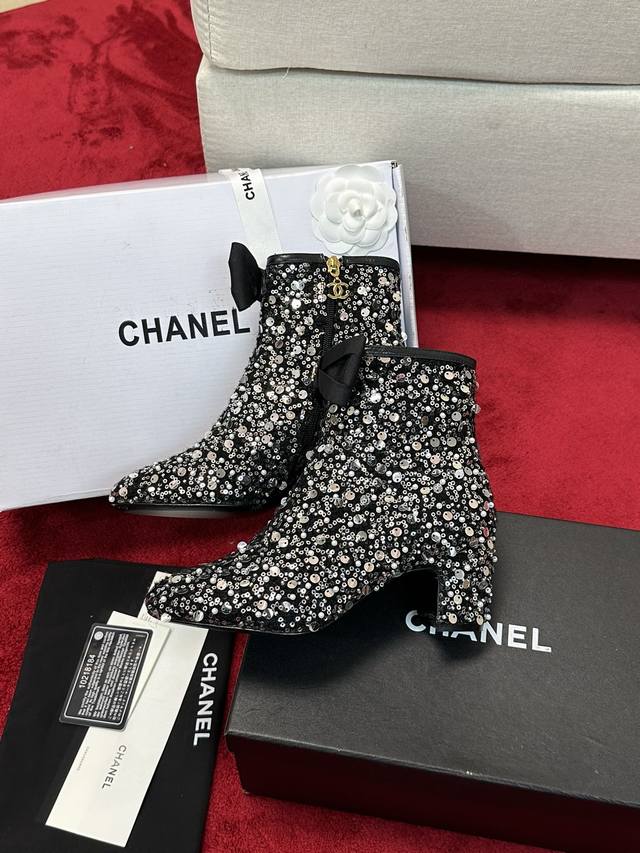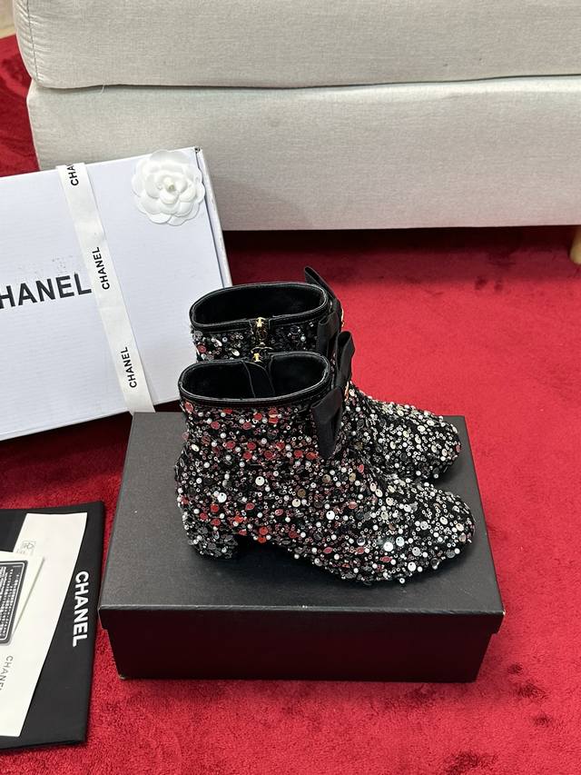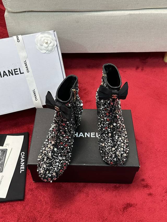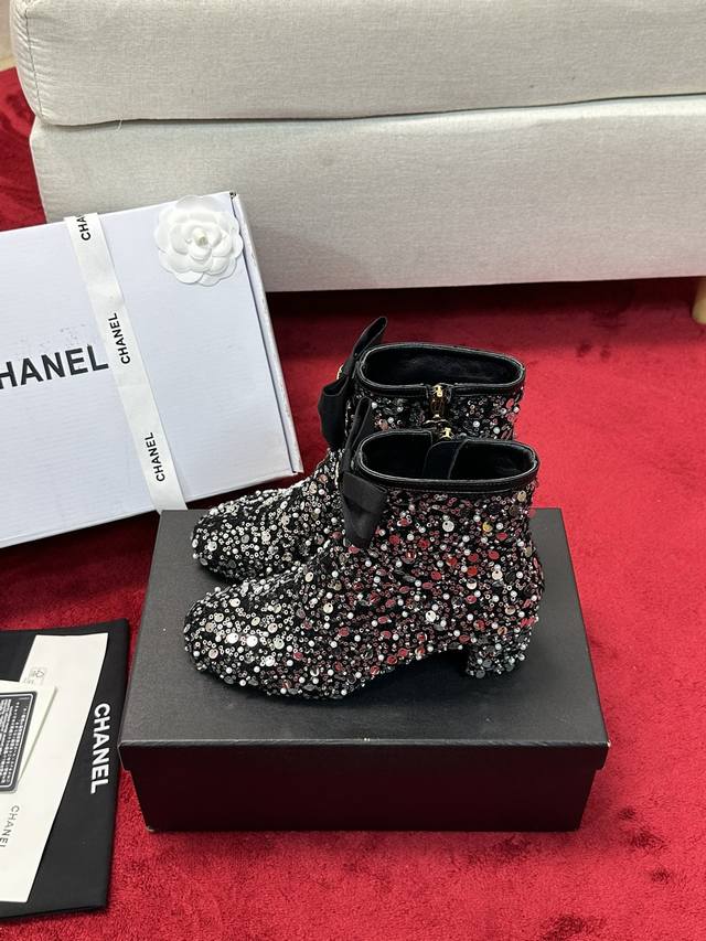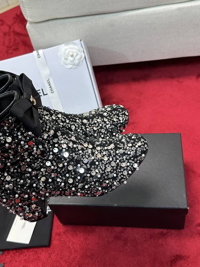 厂价 DDD Chane*|小香24B秋冬新品 DDD 亮片串珠蝴蝶结短靴 DDD 鞋面采用原版定制布料 DDD 内里垫脚都是丝绸羊皮 DDD 意大利进口牛皮大底 DDD Size:35-39 40 41定制 DDD