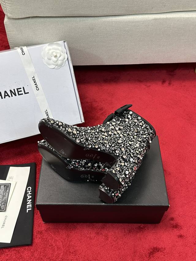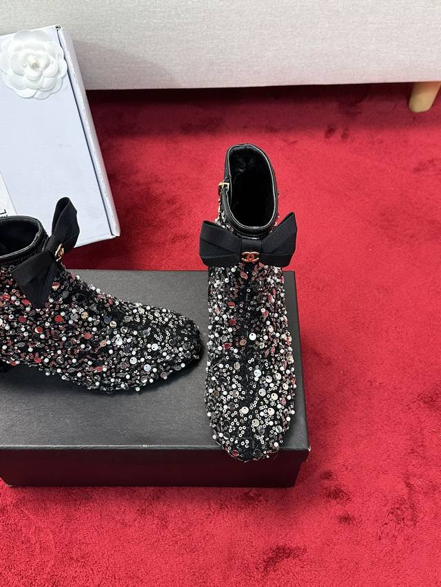 厂价 Chane*|小香24B秋冬新品 亮片串珠蝴蝶结短靴 鞋面采用原版定制布料 内里垫脚都是丝绸羊皮 意大利进口牛皮大底 Size:35-39 40 41定制