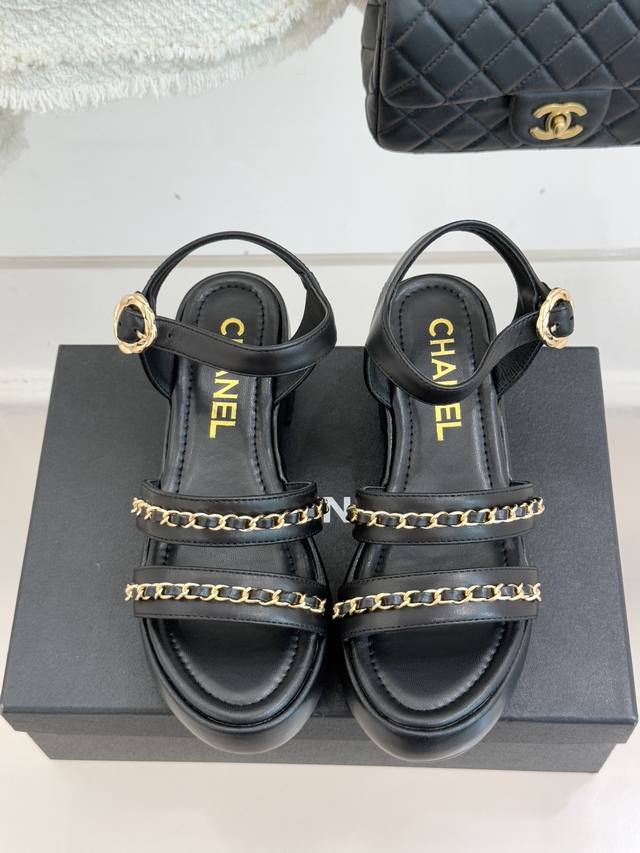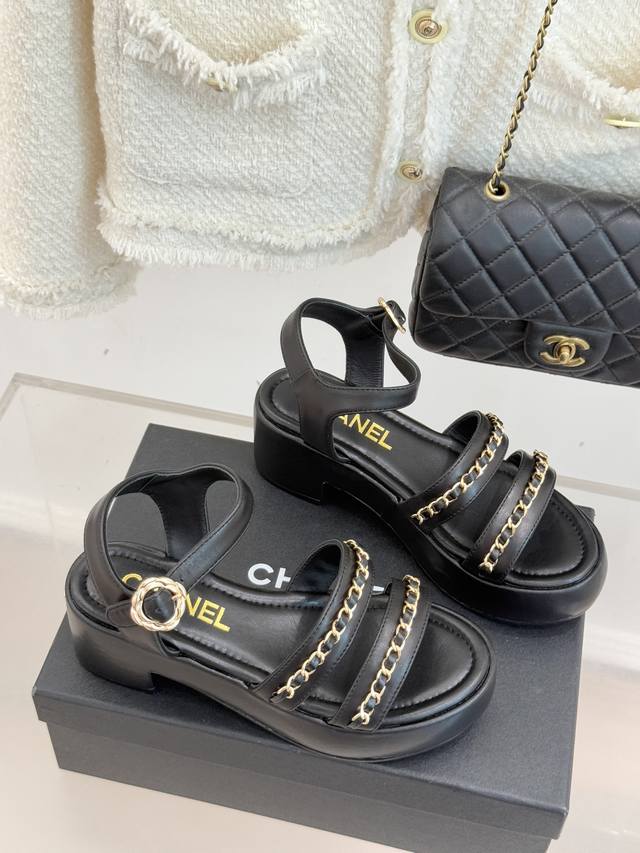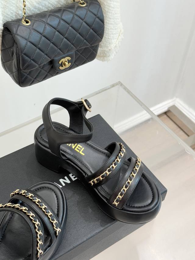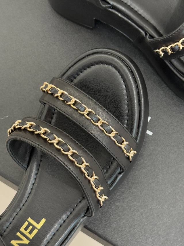 厂价 DDD Chane*|小香25K新品双C链条 DDD 厚底平底凉鞋 DDD 当双C的光影交织链条的锋芒 DDD 这款凉鞋便成了法式优雅的移动注脚。 DDD 灵感暗藏大皇宫的线条美学 DDD 标志性双C金属扣缀于链条上 DDD 与链条装饰共谱品牌传承的韵律 DDD 每一寸都流淌着Coco的简约奢雅哲学 。 DDD 厚底藏住巧思 链条缀以精致 DDD 无论是牛仔短裤的随性 DDD 还是真丝长裙的温婉 都能适配 DDD 解锁全场景时尚表达。 DDD 这双凉鞋不止是鞋履 DDD 更是行走的优雅宣言 DDD