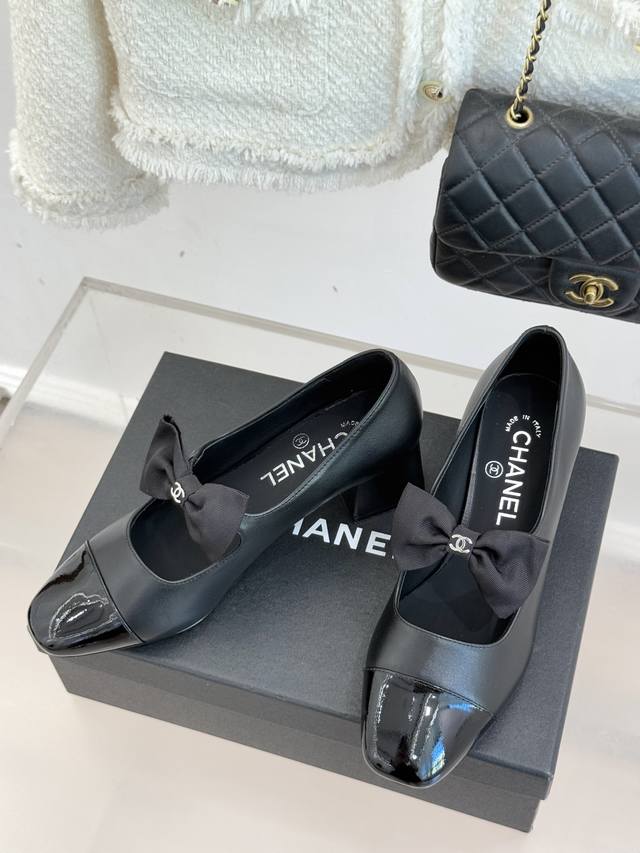 / 厂价 Chane*|小香25K新品蝴蝶结双C拼色 粗跟玛丽珍鞋 当拼色的经典基因邂逅灵动蝴蝶结 将百年玛丽珍鞋的优雅底蕴重新注解 5Cm粗跟稳稳撑起自信姿态 从
