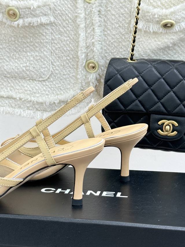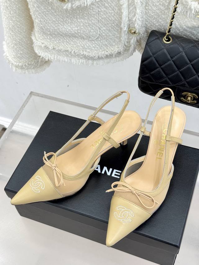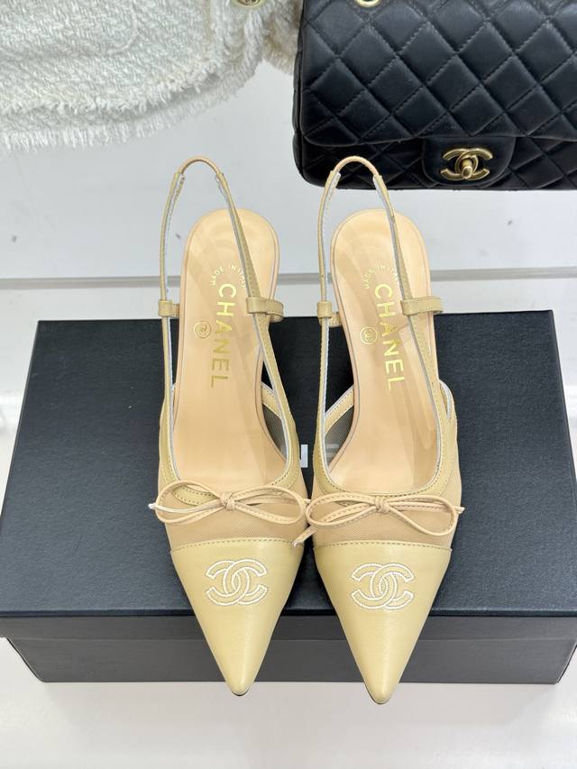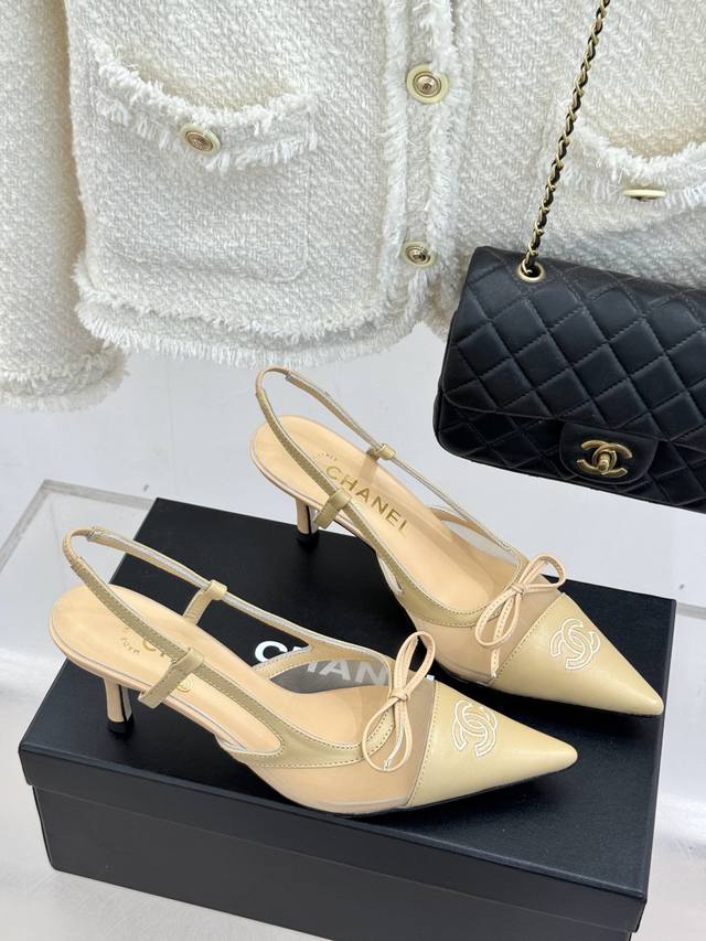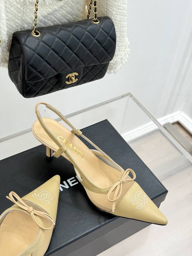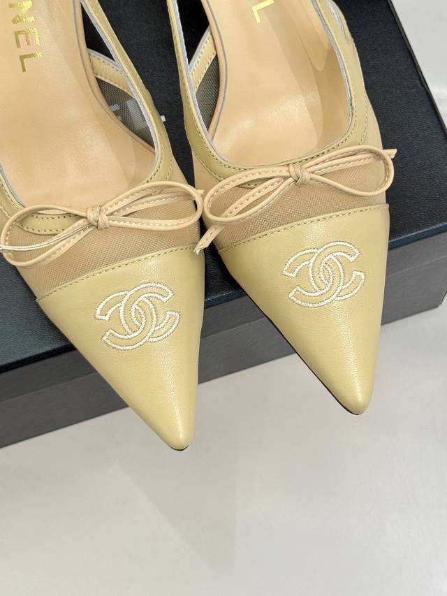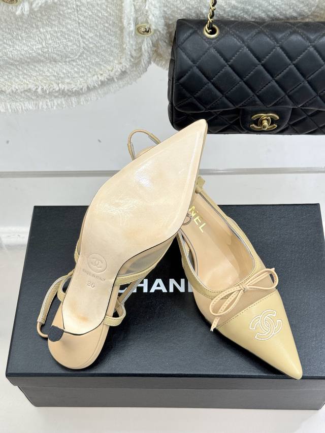 Chane*|小香Vintage中古蝴蝶结尖头后空高跟凉鞋