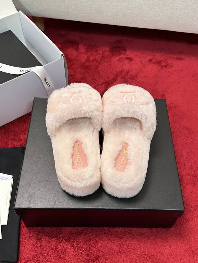 厂价 Chane* |小香经典四季双C毛毛拖鞋 这款毛拖真的是真太可爱了~ 柔软蓬松的毛毛,舒服暖脚 5Cm的厚底,增高显腿长 秋冬搭配袜子休闲又慵懒 上脚真的