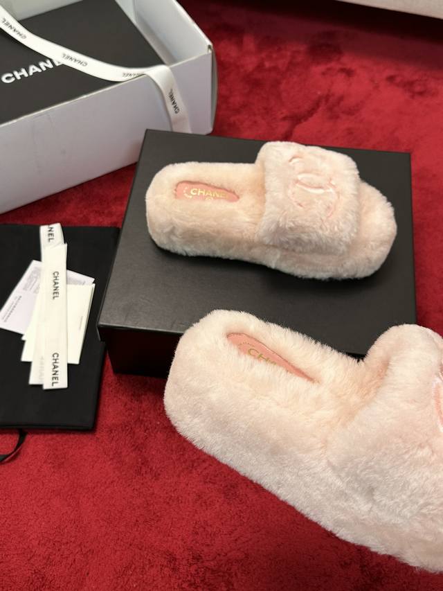 厂价 DDD Chane* |小香经典四季双C毛毛拖鞋 DDD 这款毛拖真的是真太可爱了~ DDD 柔软蓬松的毛毛,舒服暖脚 DDD 5Cm的厚底,增高显腿长 DDD 秋冬搭配袜子休闲又慵懒 DDD 上脚真的好看又时髦 DDD 进口澳洲真羊毛,手感细腻柔软丝滑 DDD 原版开模橡胶底 DDD Size:35-39 40 41定制 DDD