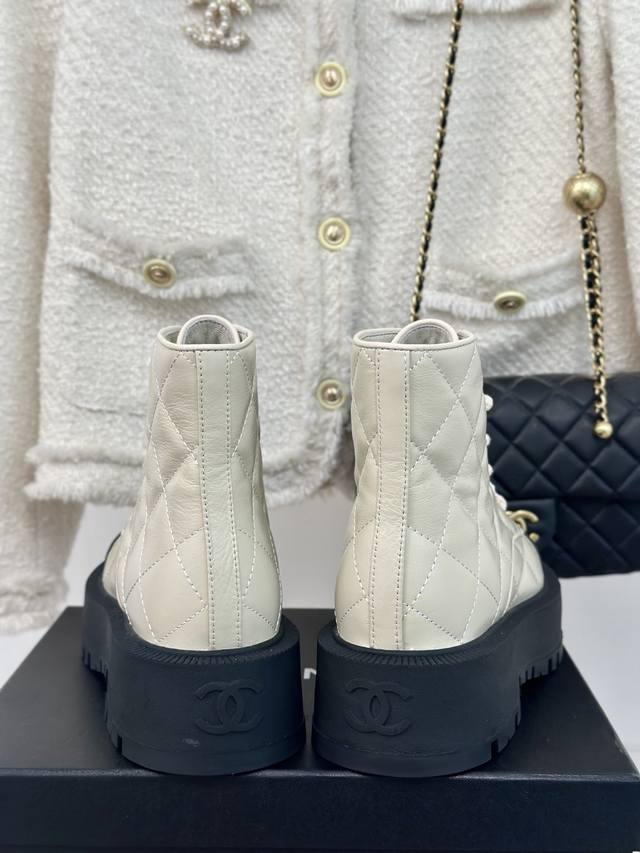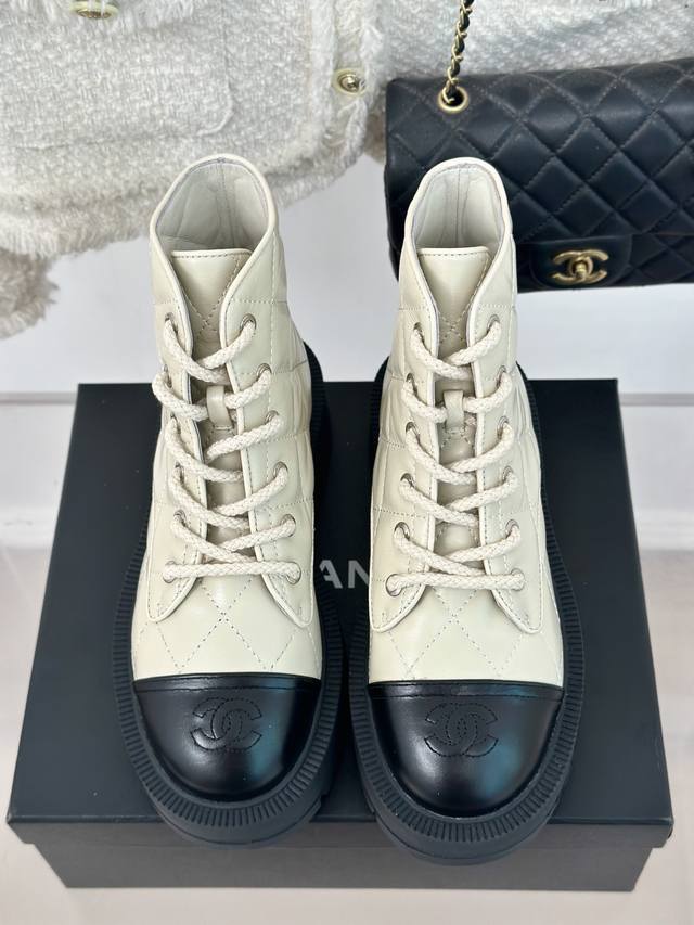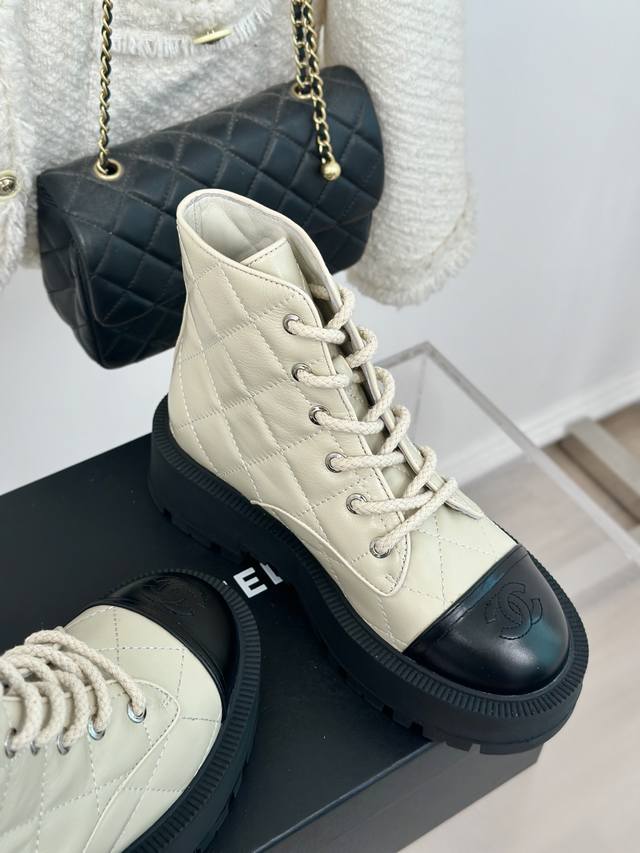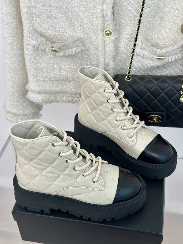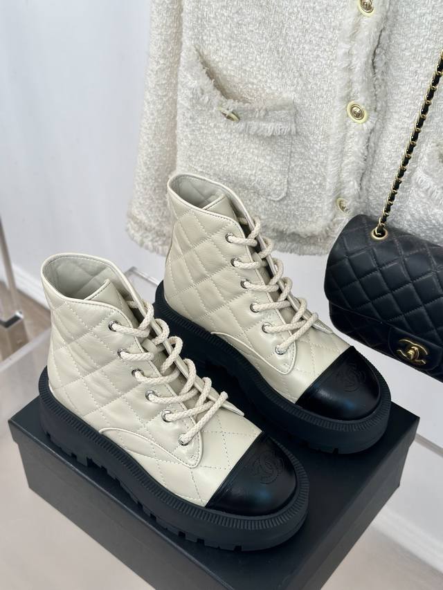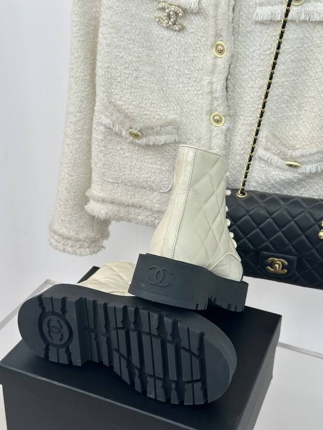 / 厂价 Chane* |小香经典秋冬 双C厚底菱格松糕机车短靴 鞋面采用进口小牛皮 内里垫脚均为羊皮 原版开模橡胶成型大底! 底高:5Cm 码数:35-39 40