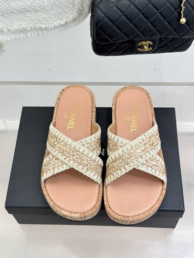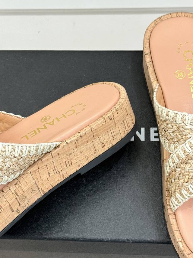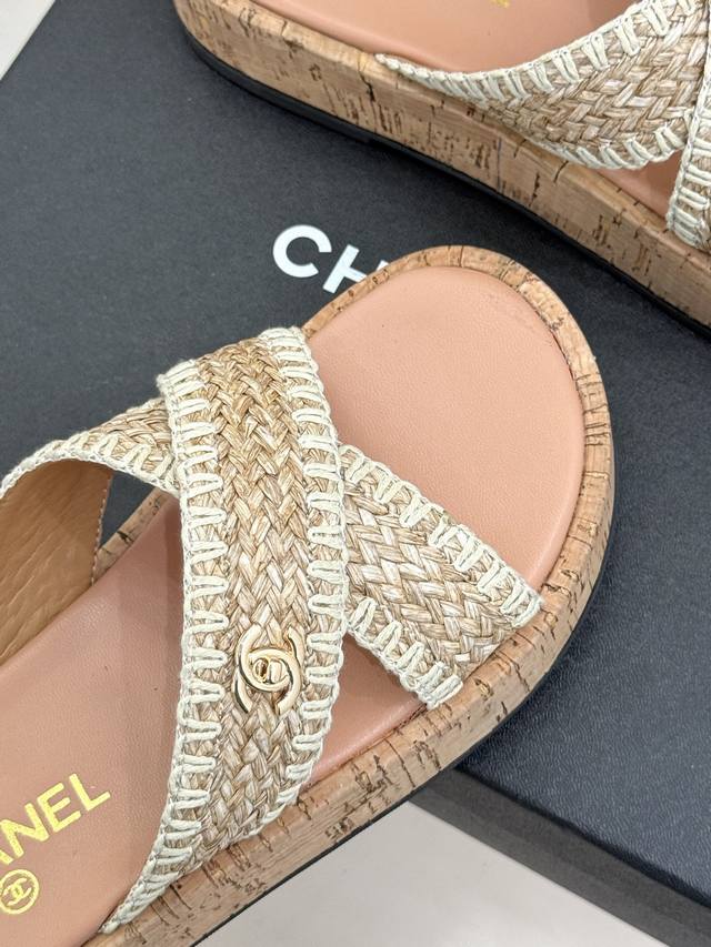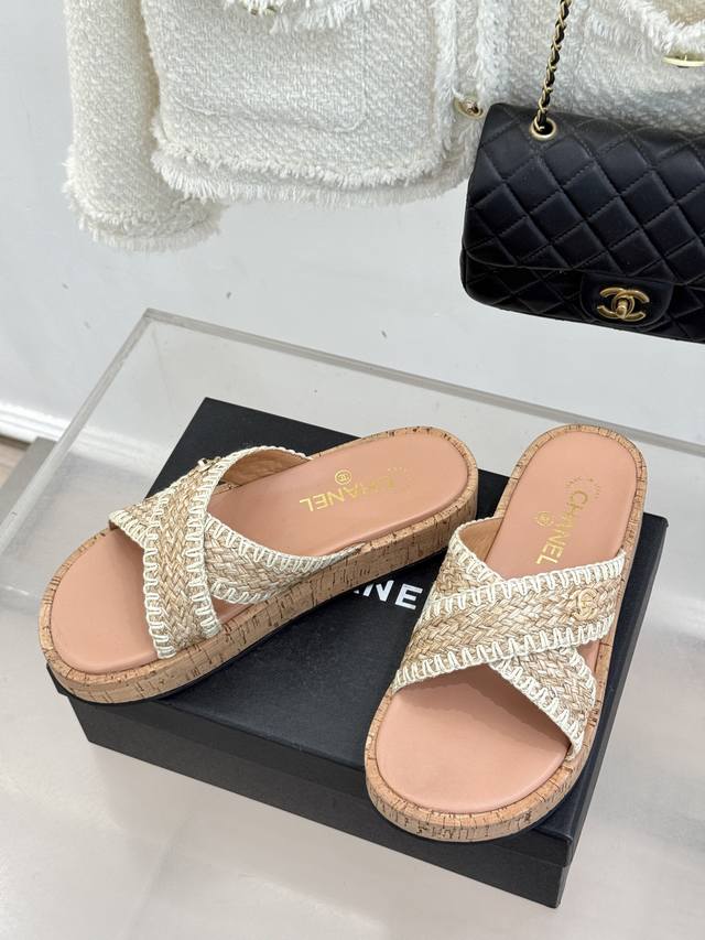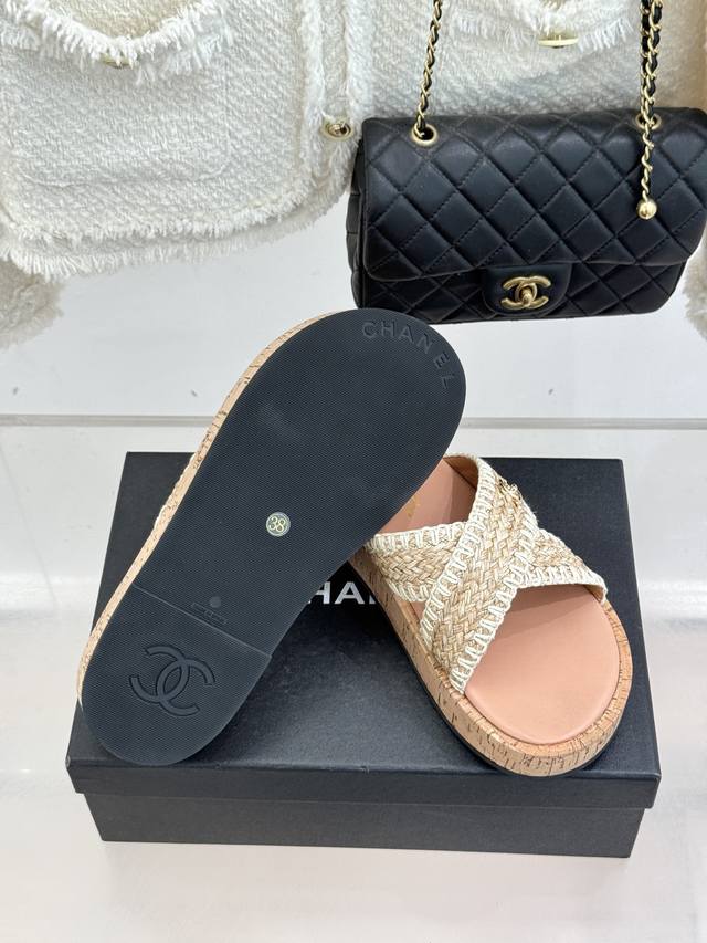 FFF 厂价 DDD Chane*|小香经典双C编织厚底 DDD 交叉拖鞋 DDD 让一双拖鞋成为行走的奢雅名片。 DDD 这双拖拖以经典重构松弛 DDD 每一处细节都镌刻着百年品牌的格调 DDD 标志性手工编织交叉设计鞋面 DDD 鞋身点睛双C五金 质感低调不浮夸 DDD 1925年传承至今的经典标识 DDD 既是品牌底蕴的彰显 是不张扬的底气 DDD 4Cm黄金高度隐形增高 拉长腿部线条 DDD 三七分比例 小个子也能穿出挺拔气场 DDD 搭缎面吊带裙是晚宴温柔千金 DDD 配亚麻西装阔腿裤是职场奢雅