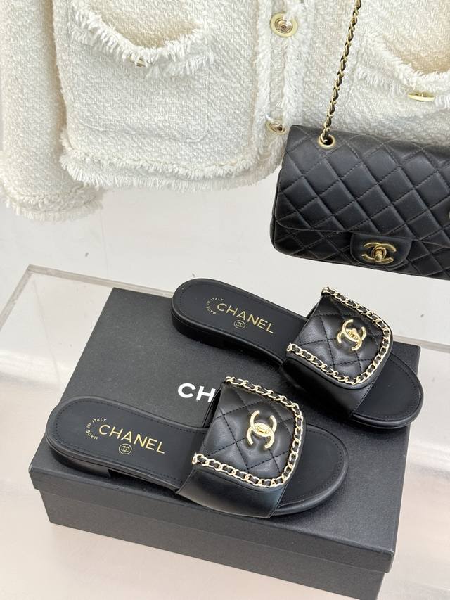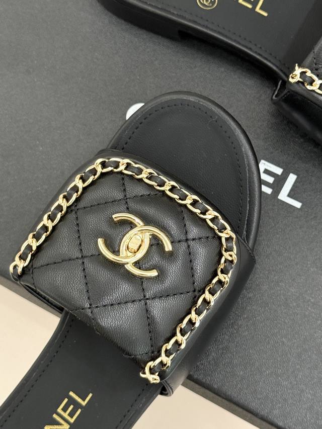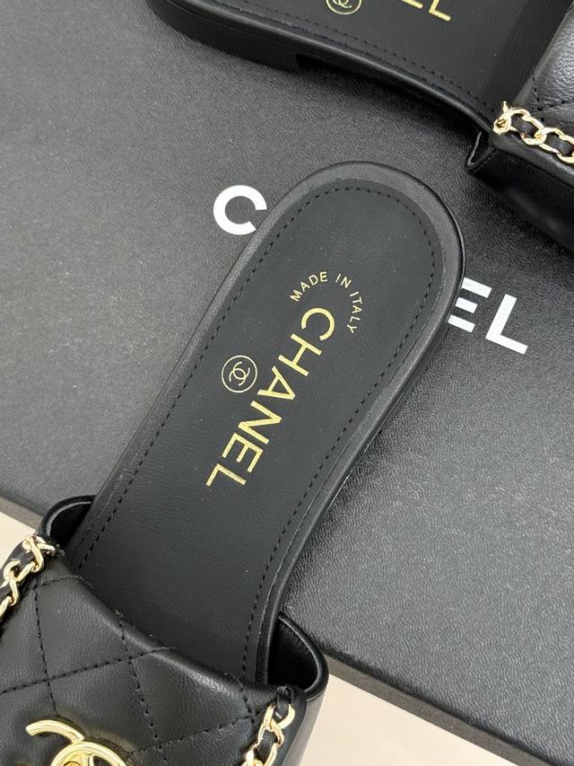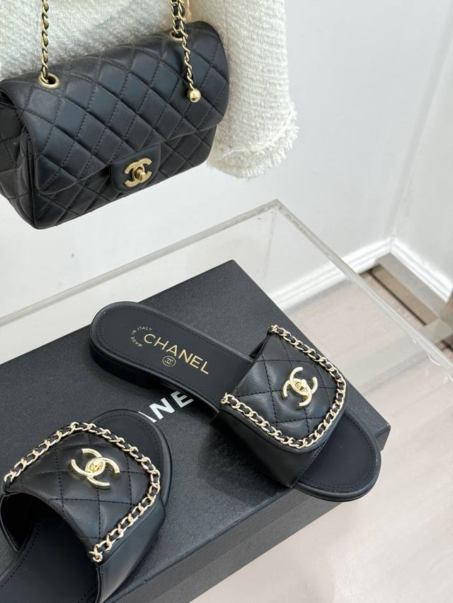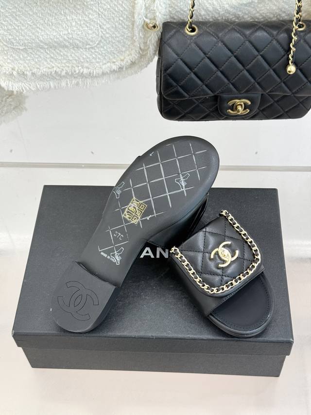 厂价 DDD Chane*|小香经典春夏翻盖 DDD 双C书包扣拖鞋 DDD 经典永不过时 简约大气 DDD 标志性翻盖双C书包扣搭配链条设计~ DDD 显瘦百