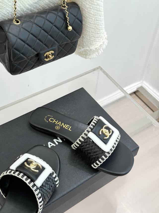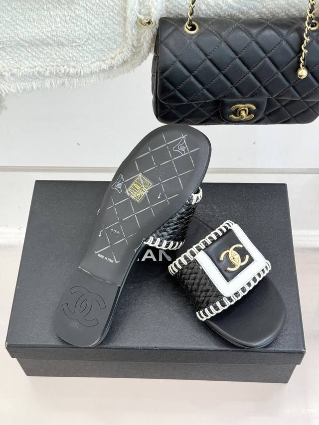 FFF 厂价 DDD Chane*|小香经典编织双C翻盖拖鞋 DDD 以手工编织美学诠释不费力的高级感。 DDD 精选新疆长绒棉绳纯手工交织鞋面 DDD 标志性翻盖设计 双C徽标低调闪耀, DDD 一脚蹬设计解锁懒人时髦 DDD 蹬上即走无需多余打理。 DDD 无论是搭配碎花长裙赴海边度假 DDD 还是配白衬衫牛仔裤漫步街头 DDD 都能拿捏法式慵懒腔调 DDD 让每一步都自在随性 DDD 成为跨越春夏的风格必备。 DDD 面料采用原版定制材质 DDD 内里踮脚均为丝绸羊皮 DDD 意大利进口真皮大底 D