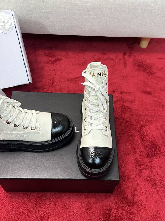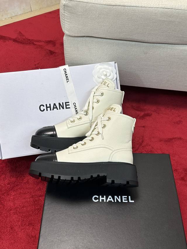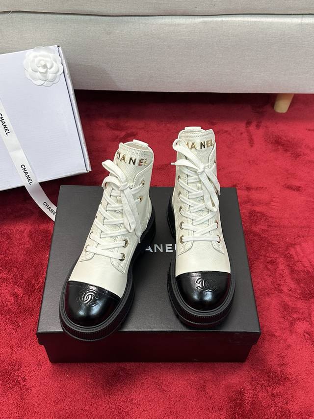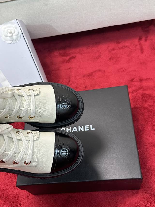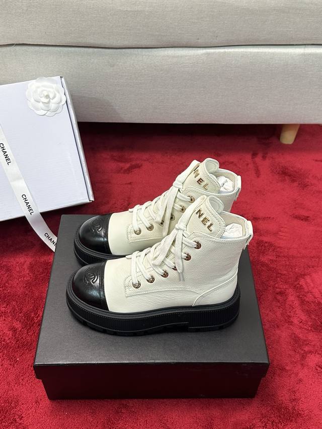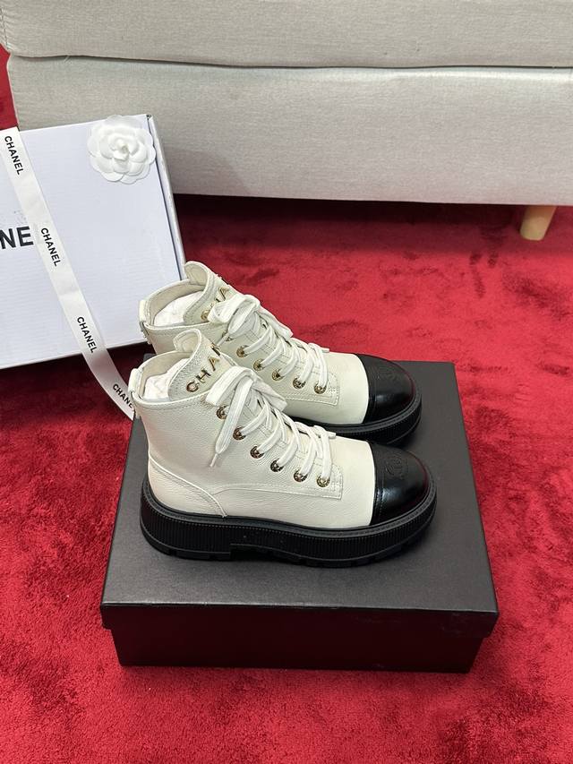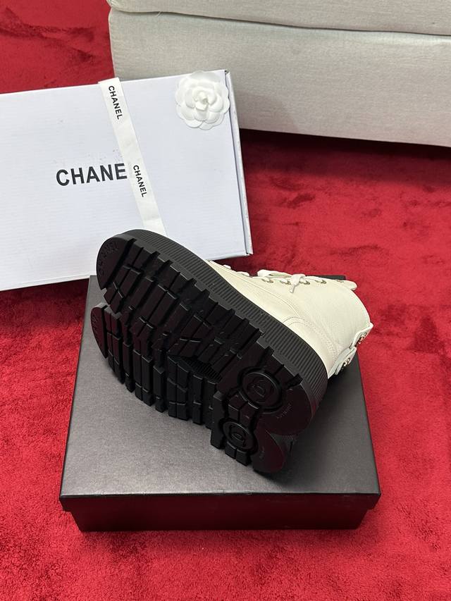 / 厂价p单鞋 布面 短靴 毛里310 Chane* |小香经典双C秋冬厚底 系带松糕底机车短靴单鞋 鞋面采用原版定制牛皮 内里混种羊皮 原版开模橡胶成型大底! 底
