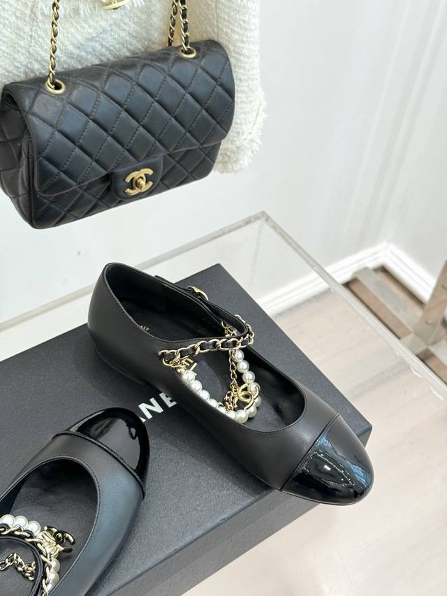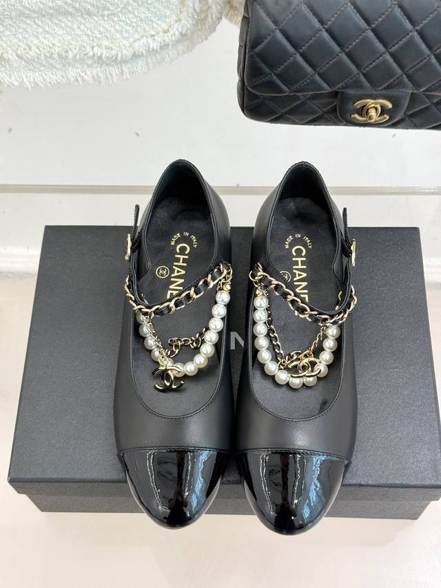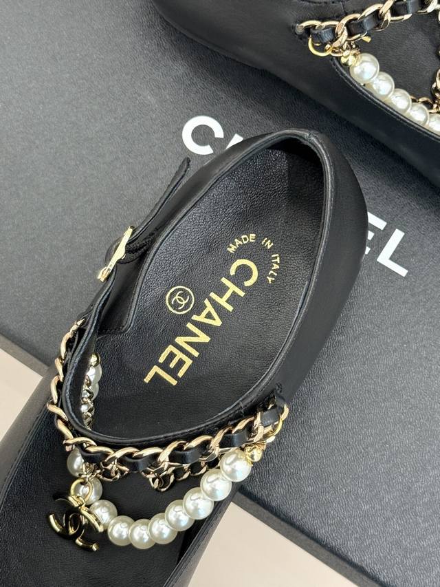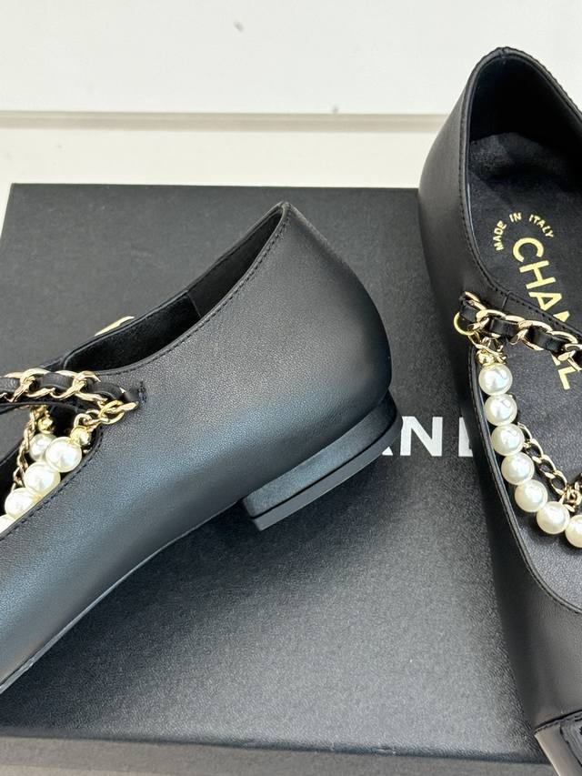 厂价p平底 高跟 DDD Chane*|小香25B珍珠链条双C玛丽珍鞋 DDD 这双玛丽珍鞋 无疑是优雅与精致的完美结晶, DDD 每一处细节都散发着独属于香奈儿的高级魅力。 DDD 鞋面上 标志性的双C Logo以立体金属质感呈现 DDD 彰显着品牌的深厚底蕴与奢华品质 。 DDD 双C金属扣旁珍珠链条蜿蜒而下 DDD 颗颗圆润饱满的珍珠紧密排列 DDD 与闪耀的金属链条交织 复古与现代元素融合 DDD 为鞋子增添了一抹灵动的奢华感 DDD 每一步都伴随着链条的轻微晃动 DDD 奏响专属的时尚乐章。 D