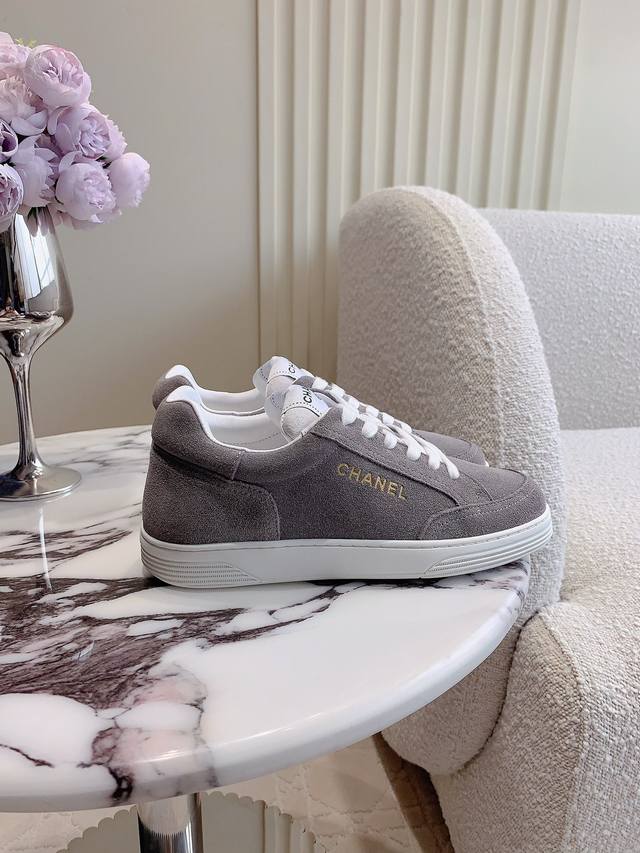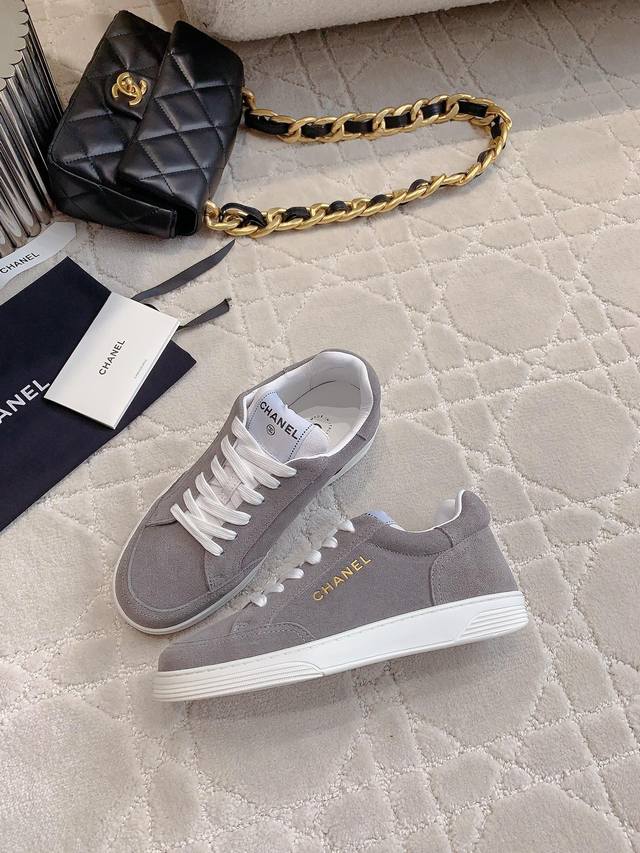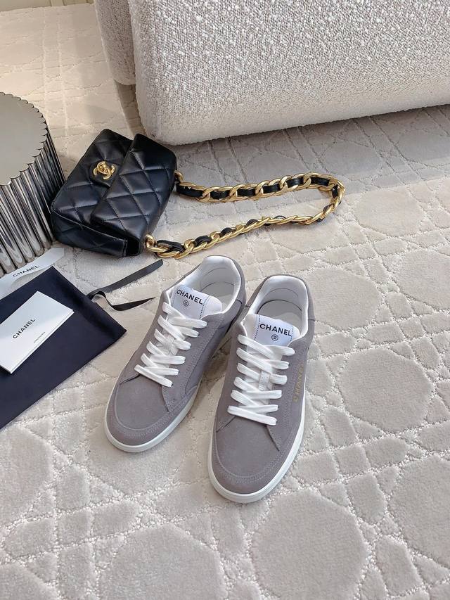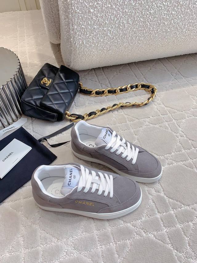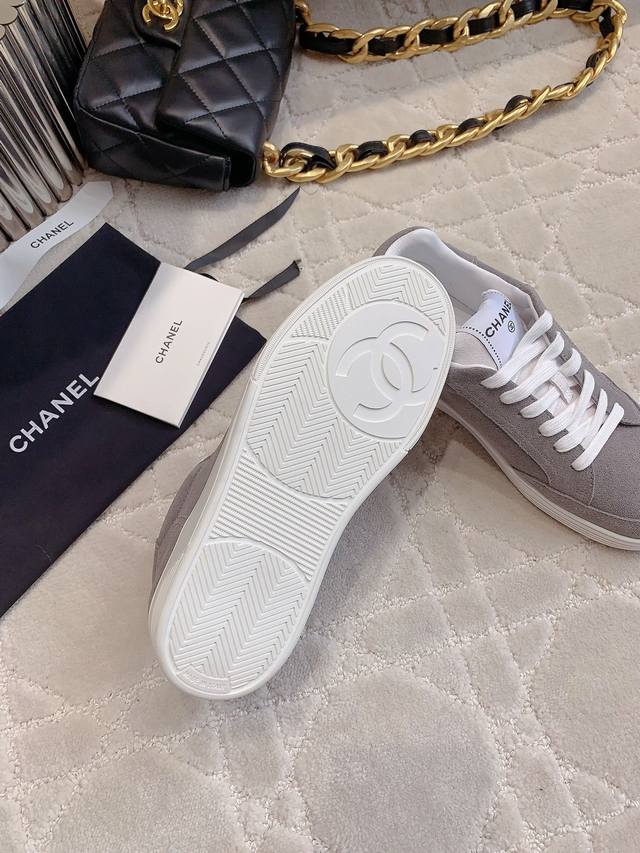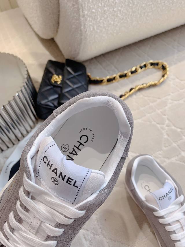 女款 男款 Chane*新款拼色休闲板鞋 经典百搭款 鞋面牛反绒 内里羊皮 垫脚牛皮 原版开模大底 女码35-39 40 41 42定做 男码39-44 45定