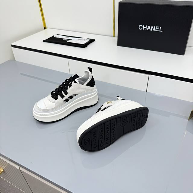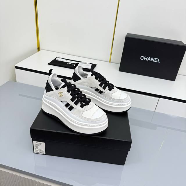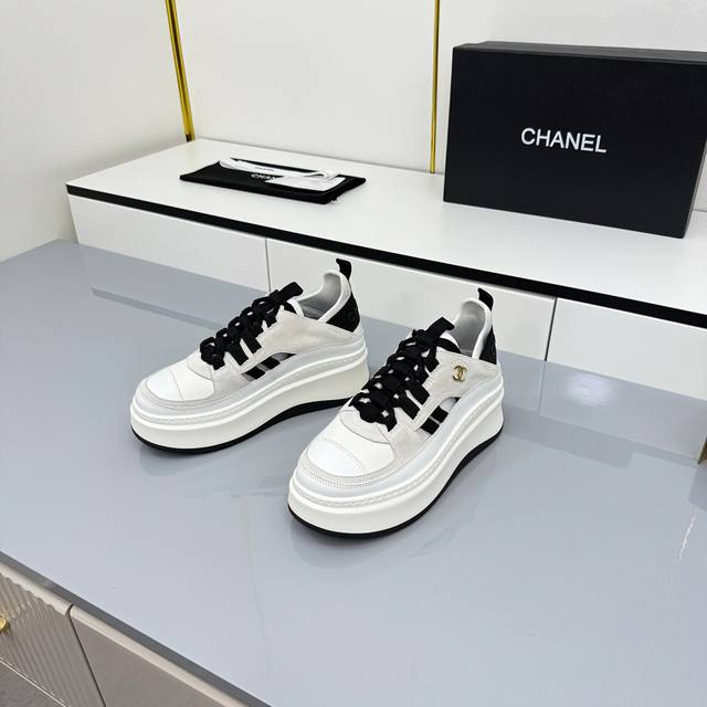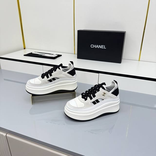 女码 Chanel香奈儿休闲厚底增高鞋 2025专柜顶级休闲款运动鞋 这款经典设计;鞋面多种工艺电绣的风格;大底却时尚运动;不平凡的拥入了多种配色元素 多元化混