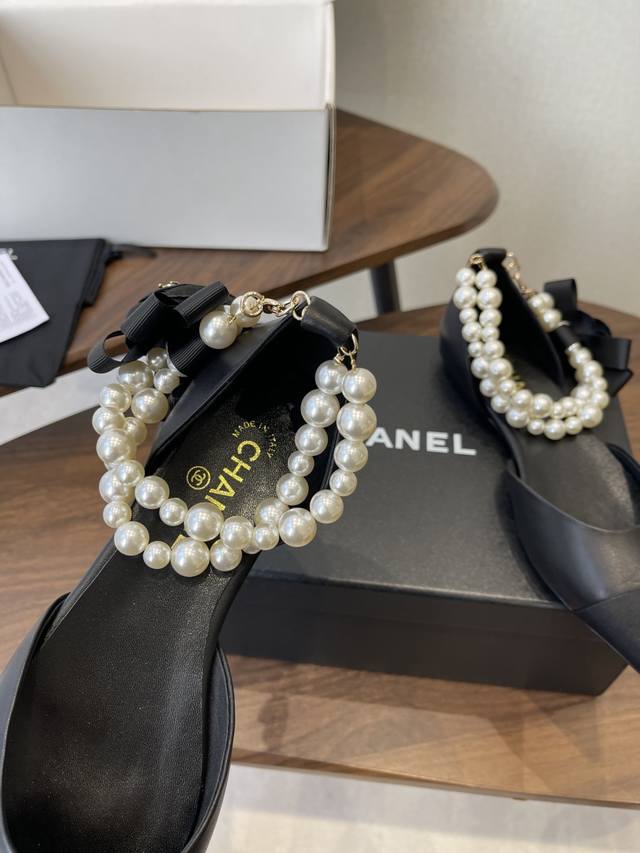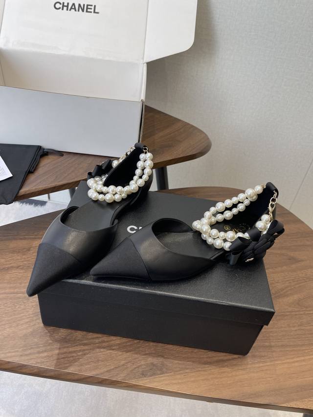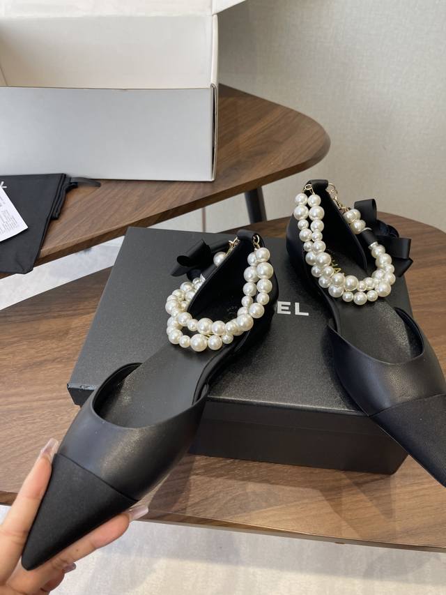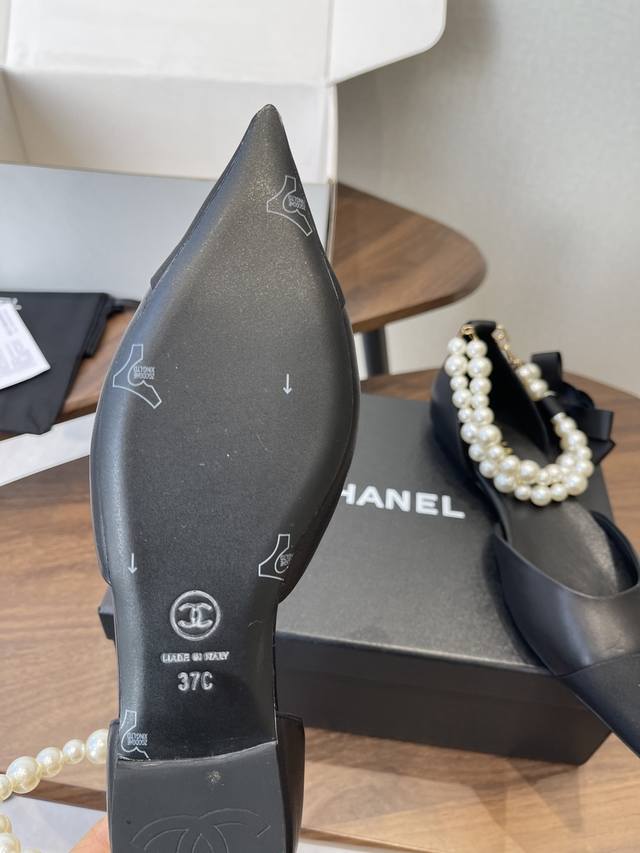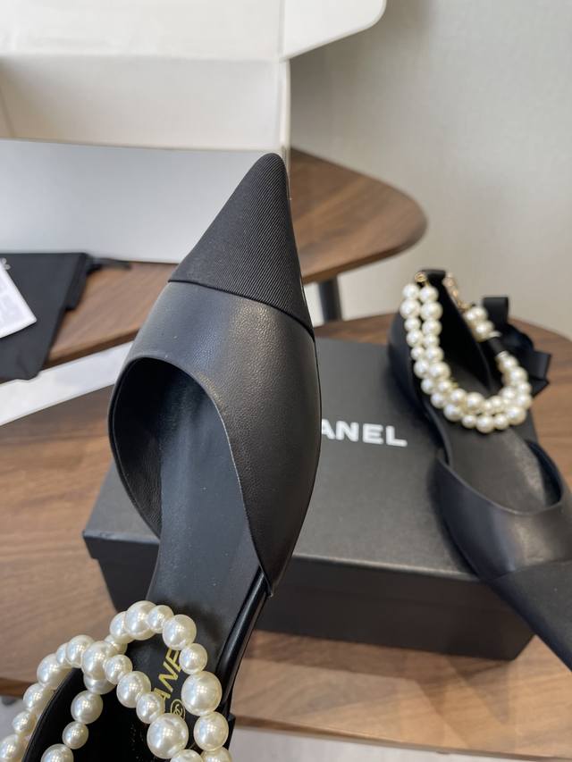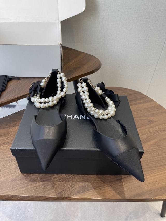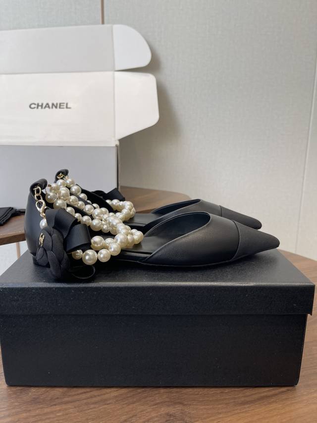 官网同步盒包装 Chanel 26春夏最新 珍珠拼色尖头 凉鞋 珍珠真的是香奈儿的灵魂 DDD 这双经典撞色鞋美到爆炸!它能让你想到那个年代娇气又矜贵的富家女~珍珠链条挂上品牌双C金属Logo, DDD 很独特也很Lady。日常搭配任何服饰都超仙 DDD 鞋面进口小羊皮,内里进口混种羊皮,意大利真皮大底 DDD Size:35-41 40 41订做不退换 DDD
