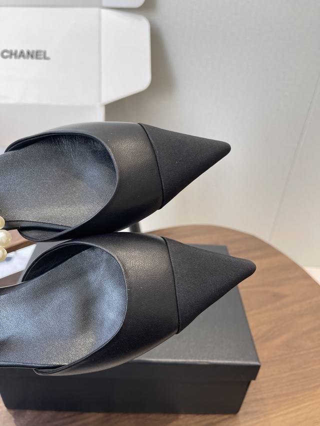 官网同步盒包装 Chanel 26春夏最新 珍珠拼色尖头 凉鞋 珍珠真的是香奈儿的灵魂 这双经典撞色鞋美到爆炸!它能让你想到那个年代娇气又矜贵的富家女~珍珠链条
