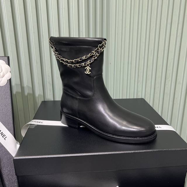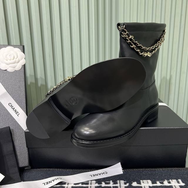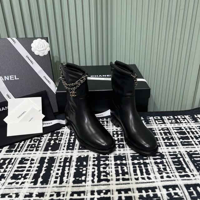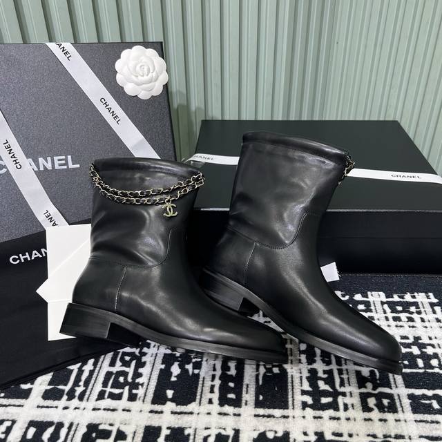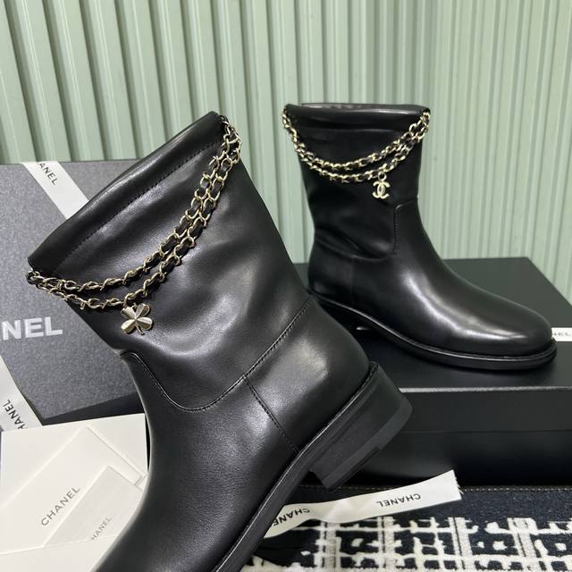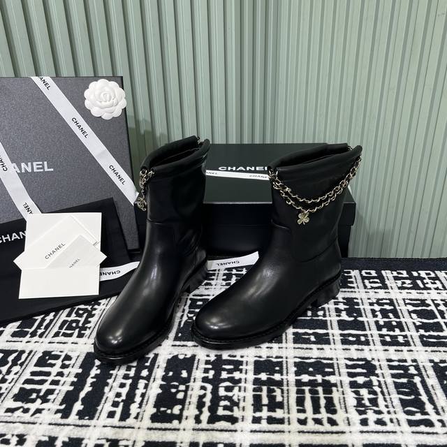 小牛皮 顶级版 Chanel 香奈儿新款四叶草双C扣链条靴子绒面短靴 标志性的双C元素与幸运的四叶草巧妙结合,链条的装饰为靴子增添了一份随性与不羁! 在行走间 链条轻轻晃动 散发着独特的魅力。 短靴的设计简洁大方 恰到好处的靴筒高度,能够修饰脚踝线条 展现出女性的优雅与干练。 而长靴则尽显大气与高贵,不仅保暖 ,气场十足。轻松成为众人瞩目的焦点。 无论是搭配牛仔裤打造休闲时尚的日常造型,还是与连衣裙组合 出席重要场合。这一系列靴子都能轻松驾驭 为整体穿搭加分不少! 鞋面:进口小牛皮 内里垫脚:羊皮 鞋底: