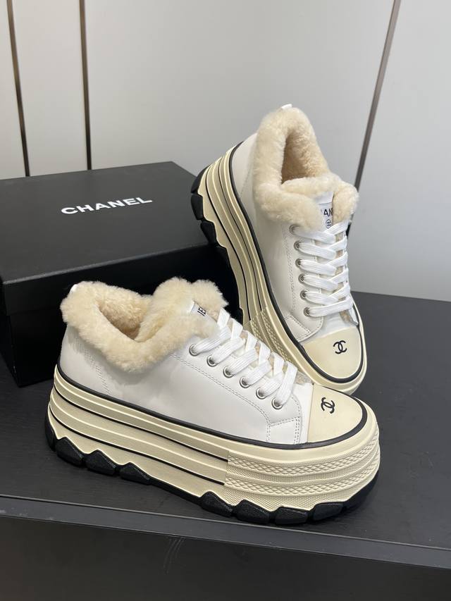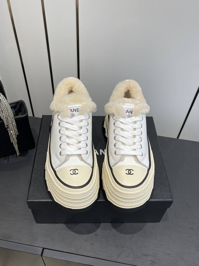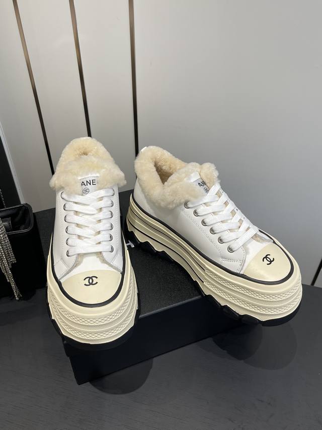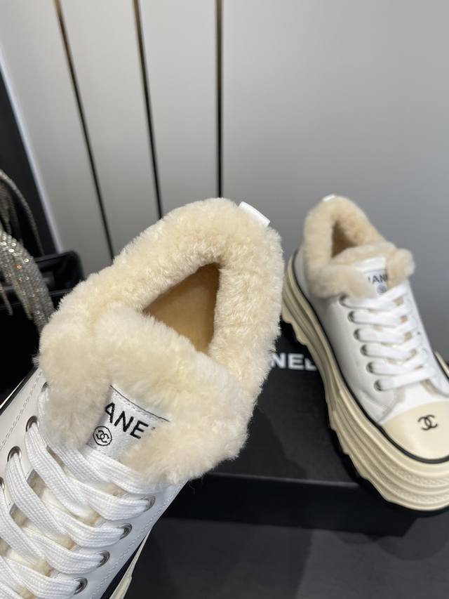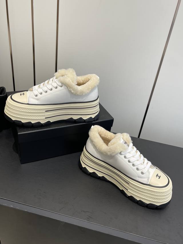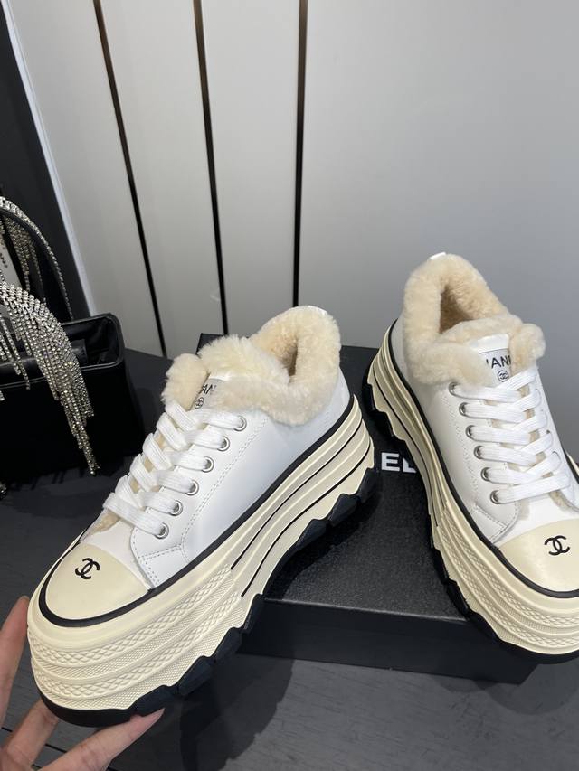 小香秋冬新款 厚底毛里休闲鞋 小白鞋 DDD Vintage感满满 中古复刻款Get啦~小白鞋适配黑白拼接就很Chanel 配合袜子就很复古学院的感觉。 DDD 鞋面采用牛皮 内里羊毛垫脚羊毛 DDD 跟高6Cm 原版Tpu组合大底 DDD 码数:35-40 40定做 DDD
