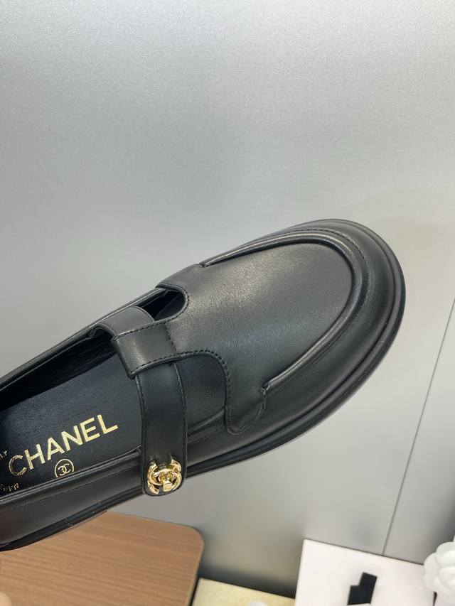 工厂p价p 莞产 代购级 Chanel 香奈儿 2025秋冬走秀新款厚底乐福女鞋 小香字母Logo五金扣圆头低跟女单鞋 材质:鞋面进口小牛皮+混种羊皮内里+原版