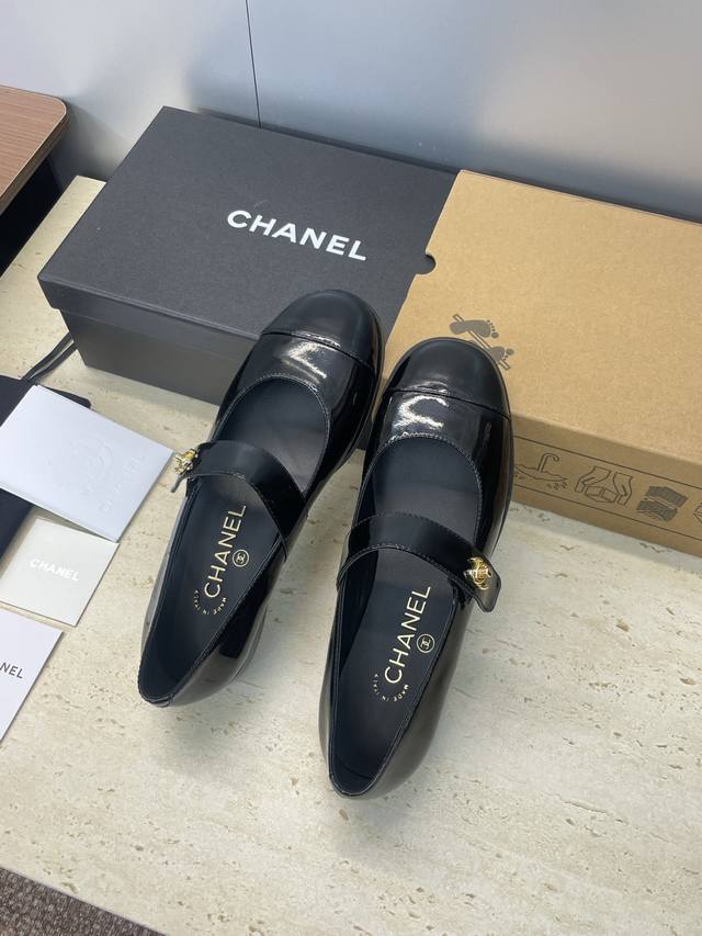 工厂p价p DDD 莞货 顶级代购版 Chanel 香奈儿 2025秋冬新款玛丽珍芭蕾舞娃娃女鞋 小香字母Logo五金扣低跟圆头拼色乐福单鞋 DDD 材质:鞋面进口牛漆皮+水染羊皮内里+意大利真皮大底 DDD 跟高:2.5Cm DDD Size:35 36 36.5 37 37.5 38 39 40定制不退换 DDD