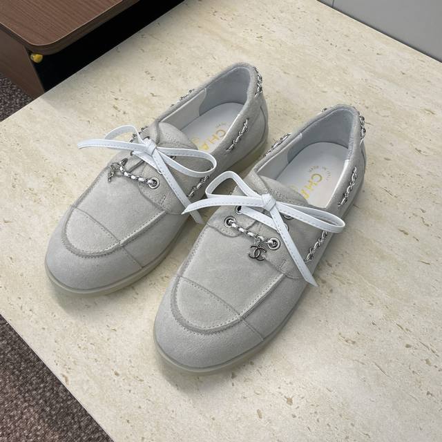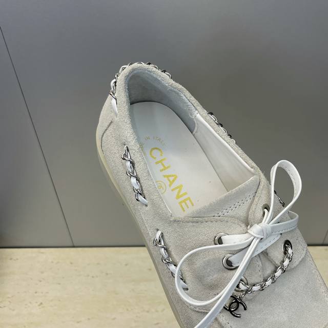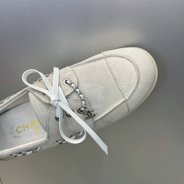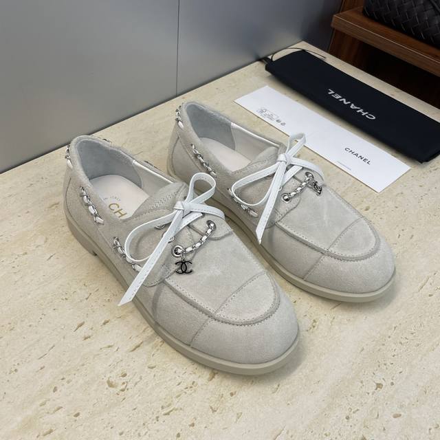 工厂p价p Ddd Chanel 香奈儿 2025早秋走秀新款朋克风格平底系带女单鞋 小香字母Logo五金链条扣圆头拼色乐福鞋 Ddd 材质:鞋面进口小牛皮 进口羊猄皮+混种羊皮内里+原版开模五金扣+原版开模Tpu大底 Ddd Size:35-41 40.41定制不退换 DDD