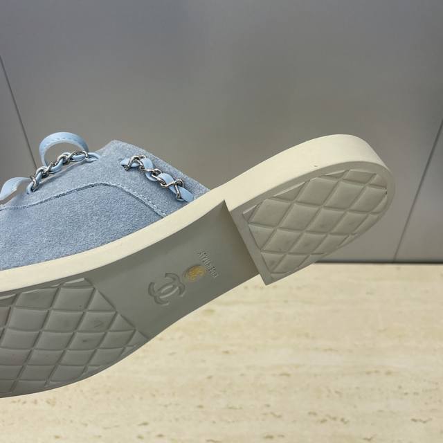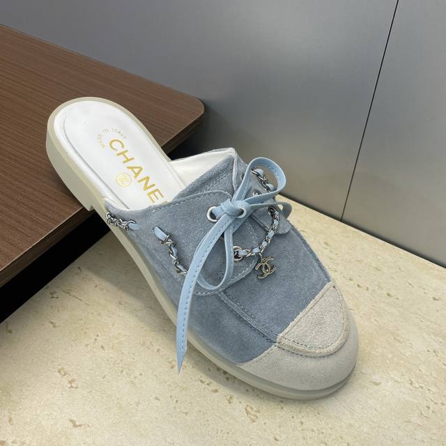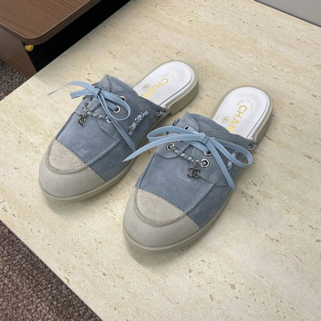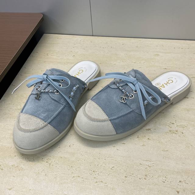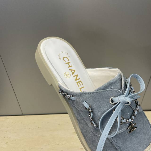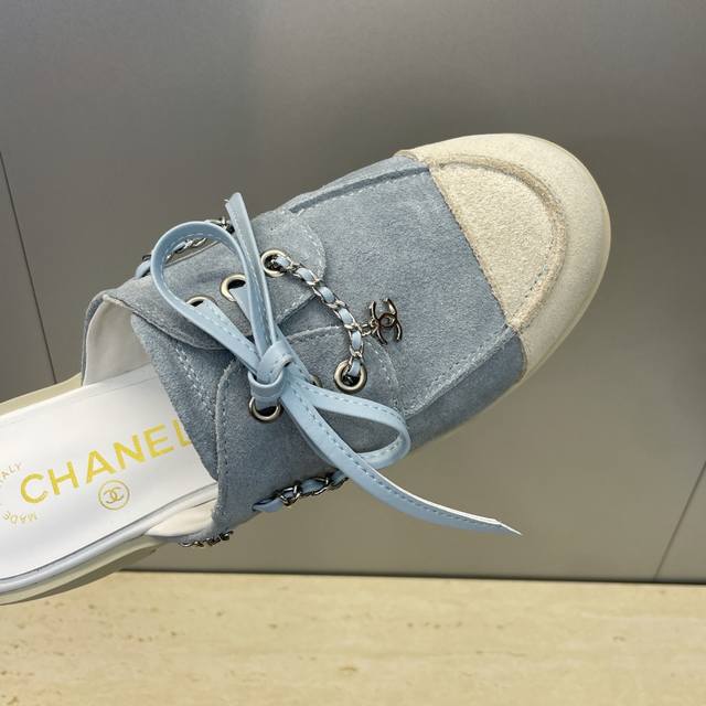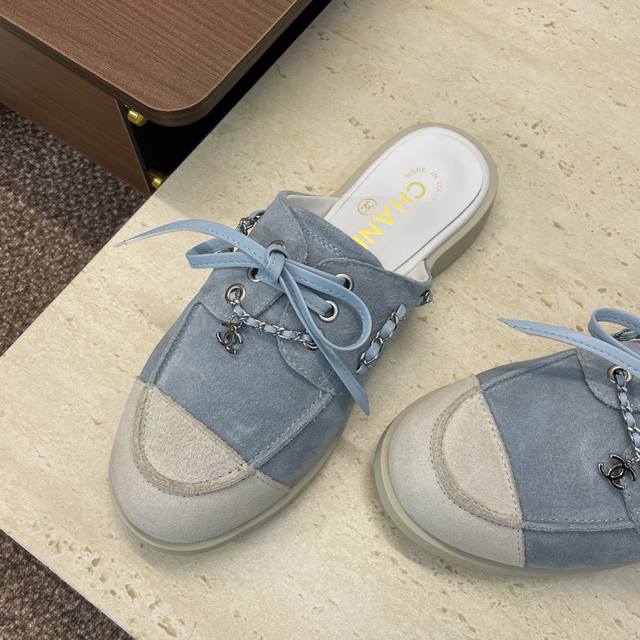 / 工厂p价p Chanel 香奈儿 2025早秋走秀新款朋克风格平底系带女鞋 小香字母Logo五金链条扣圆头拼色穆勒凉拖鞋 材质:鞋面进口小牛皮 进口羊猄皮+混种