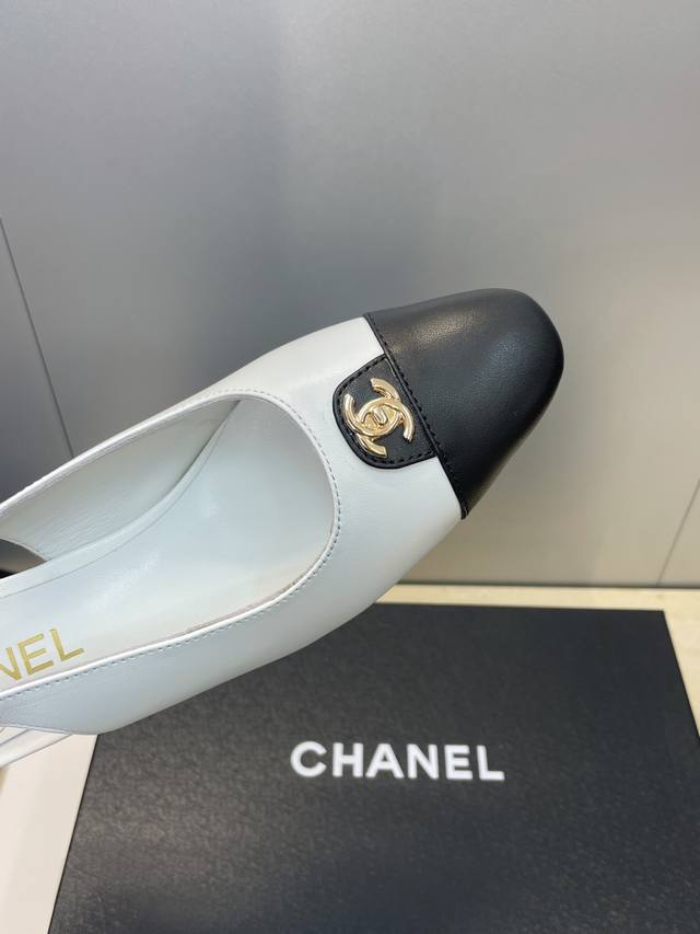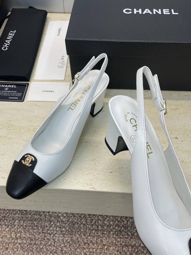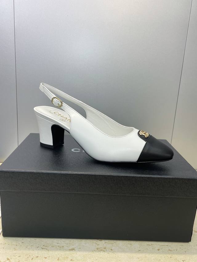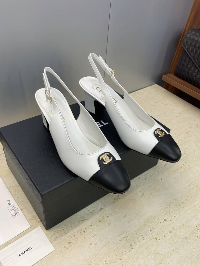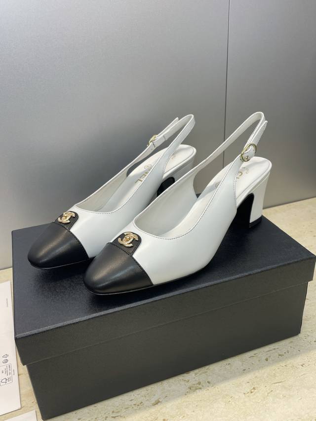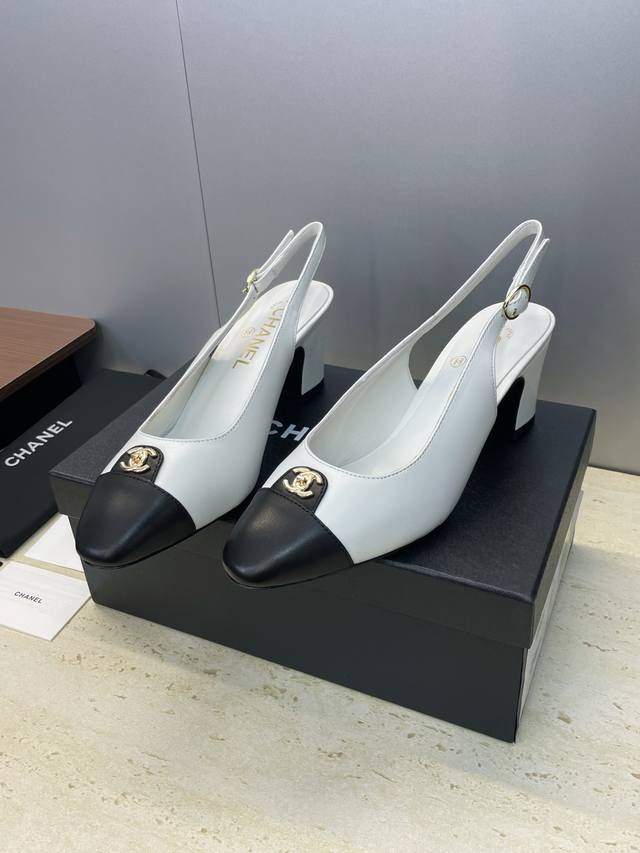 工厂p价p Ddd Chanel 香奈儿 2025早秋走秀新款高跟女鞋 小香字母Logo五金扣圆头粗跟拼色后空女凉鞋 Ddd 材质:鞋面进口小牛皮+混种羊皮内里+原版开模五金扣+意大利真皮大底 Ddd 跟高:7Cm Ddd Size:35-42 40.41.42定制不退换 DDD