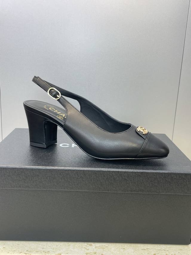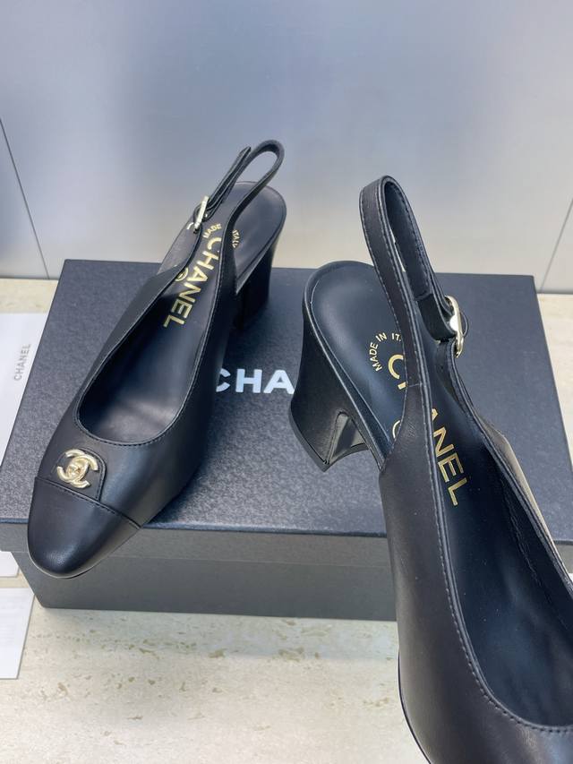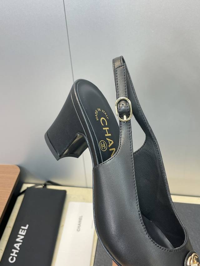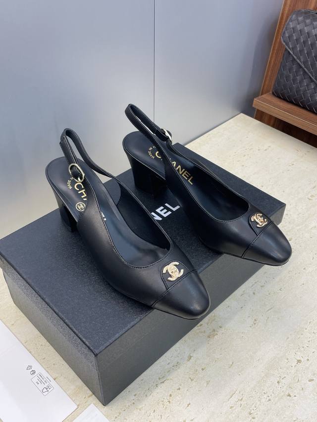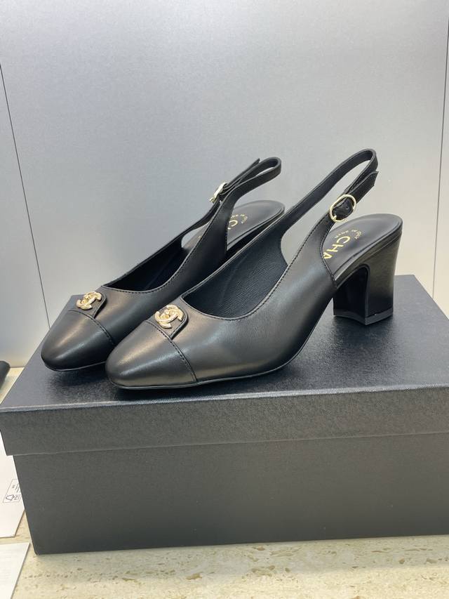 工厂p价p Ddd Chanel 香奈儿 2025早秋走秀新款高跟女鞋 小香字母Logo五金扣圆头粗跟拼色后空女凉鞋 Ddd 材质:鞋面进口小牛皮+混种羊皮内里+原版开模五金扣+意大利真皮大底 Ddd 跟高:7Cm Ddd Size:35-42 40.41.42定制不退换 DDD