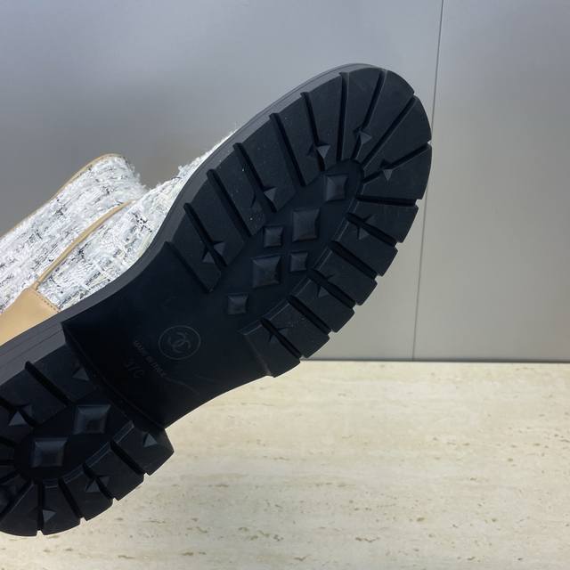 / 工厂p价p Chanel 香奈儿 2025秋冬新款及裸拼色女短靴 小香字母Logo水钻五金皮带扣圆头低跟拼色机车骑士靴 材质:鞋面进口小牛皮 进口环保透气毛呢料