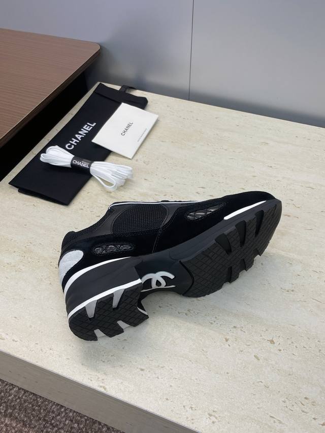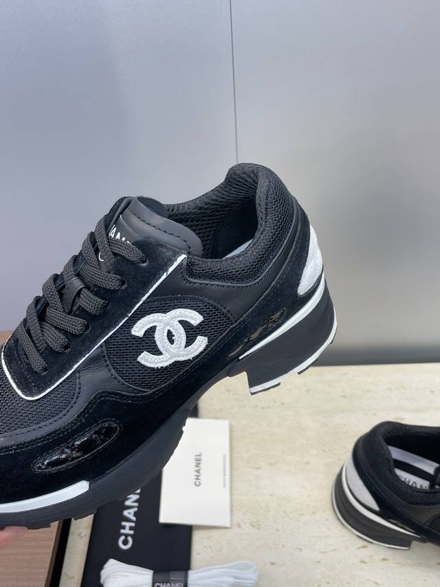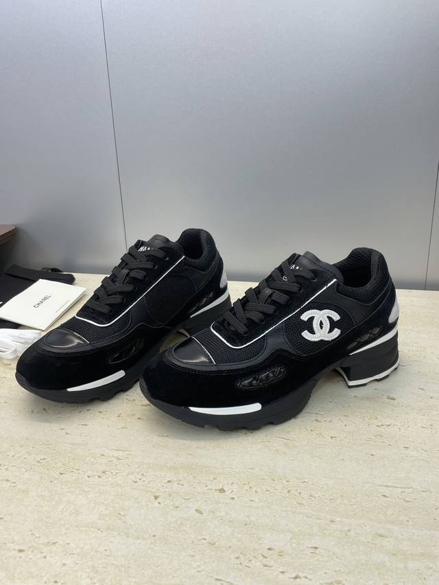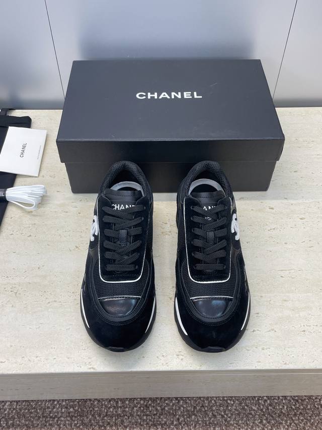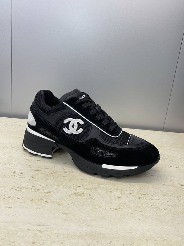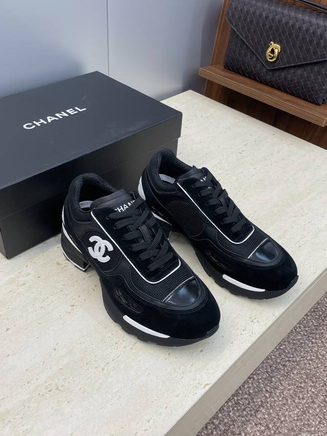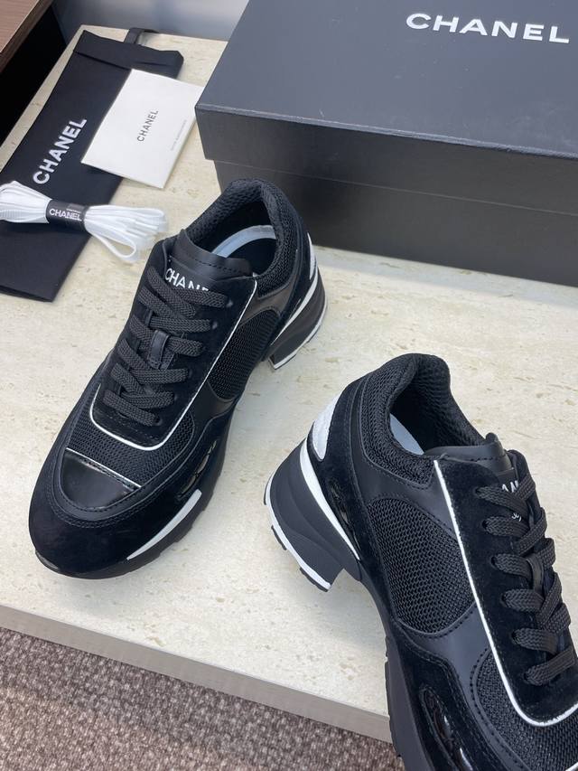/ 工厂p价p Chanel 香奈儿 2025秋冬新款系带休闲女鞋 小香字母Logo厚底低跟圆头拼色运动老爹跑鞋 材质:鞋面进口小牛皮拼接环保透气网眼布 进口羊猄皮