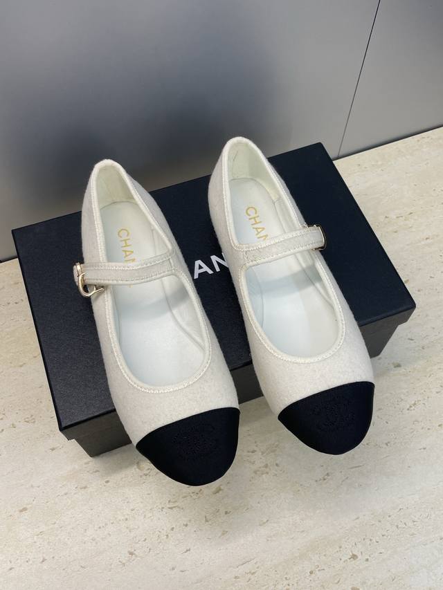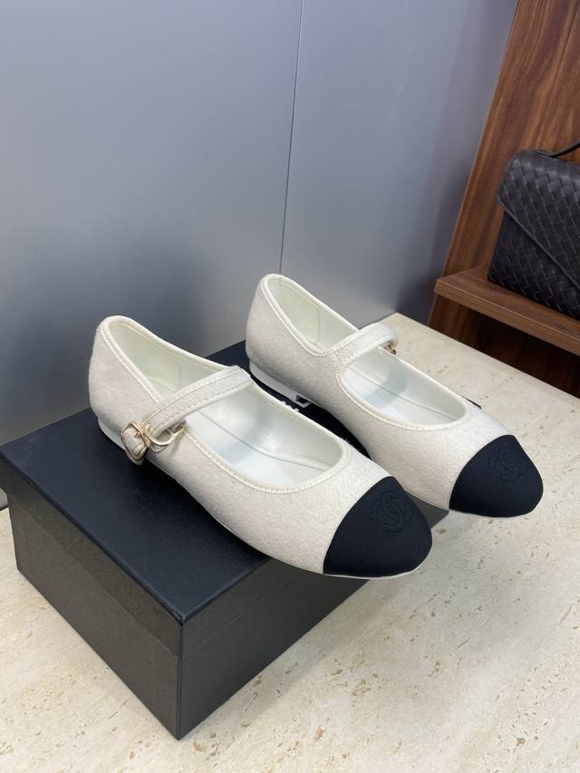 / 工厂p价p Chanel 香奈儿 2025秋冬走秀新款平底乐福女鞋 小香字母Logo五金扣圆头低跟玛丽珍芭蕾舞女单鞋 材质:鞋面进口环保透气毛呢面料++混种羊皮