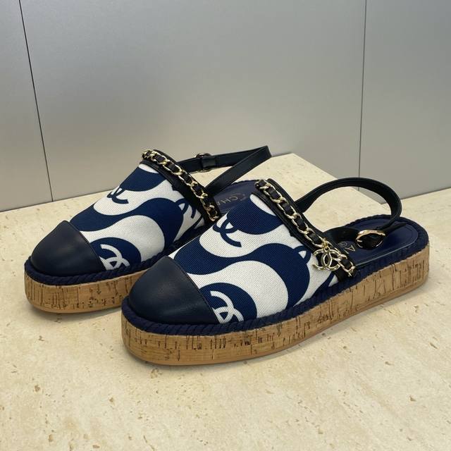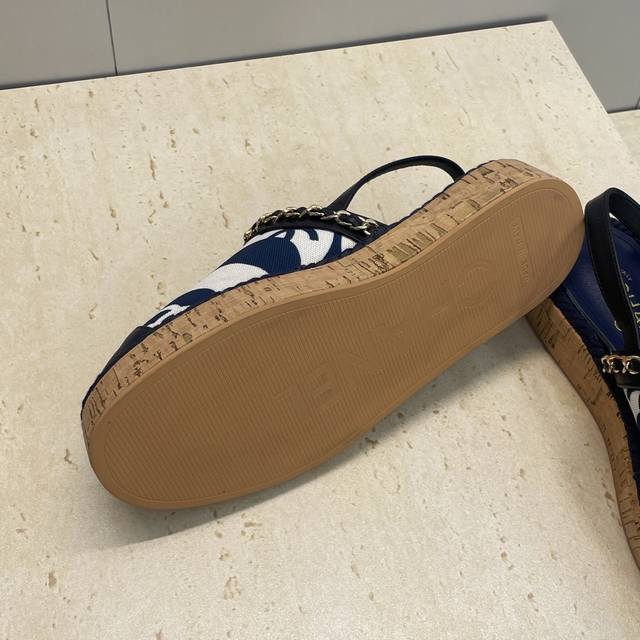 工厂p价p Chanel 香奈儿 2026早春走秀新款厚底麻绳渔夫女鞋 小香双C字母Logo链条五金扣圆头拼色中空凉鞋 材质:鞋面进口混种羊皮 进口环保帆布面+
