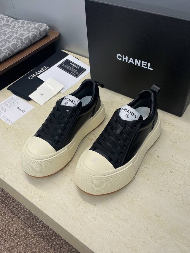 工厂p价p DDD Chanel 香奈儿2025秋冬新款系带休闲小白鞋 小香字母Logo厚底圆头拼色运动滑板女鞋 DDD 材质:鞋面进口小牛皮+水染羊皮里+原版开模大底 DDD 底厚:4Cm DDD Size:女码35-41 40.41定制不退换 DDD