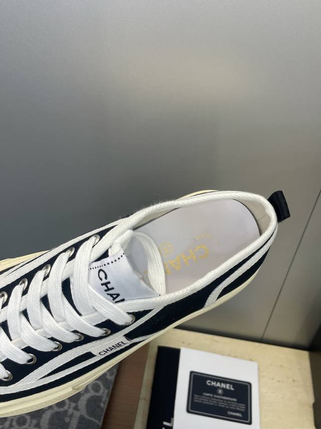 / 工厂p价p Chanel 香奈儿2025秋冬新款系带帆布休闲鞋 小香字母Logo厚底圆头拼色运动滑板女鞋 材质:鞋面进口环保帆布+水染羊皮内里+原版开模大底 底