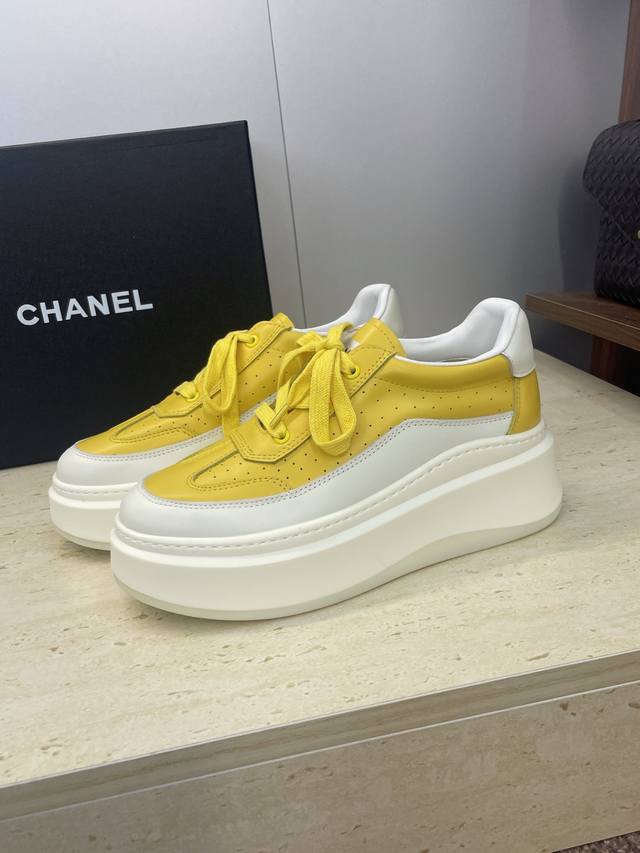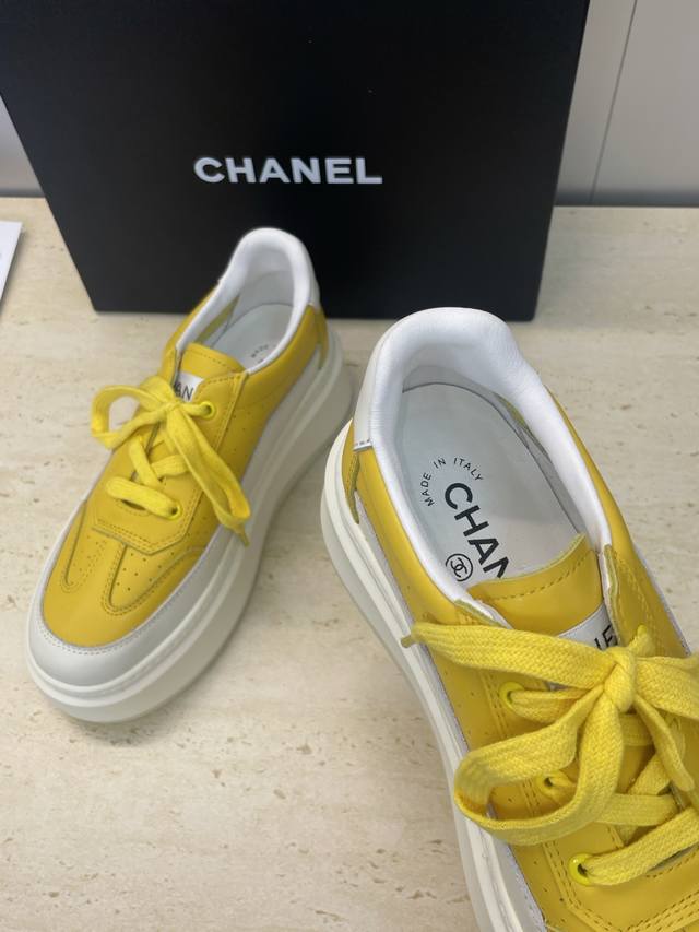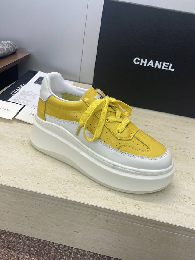 工厂p价p DDD Chanel 香奈儿2025秋冬新款系带徳训休闲小白鞋 小香字母Logo厚底圆头拼色运动女鞋 DDD 材质:鞋面进口小牛皮+水染羊皮内里+原版开模大底 DDD 底厚:4Cm DDD Size:女码35-41 40.41定制不退换 DDD