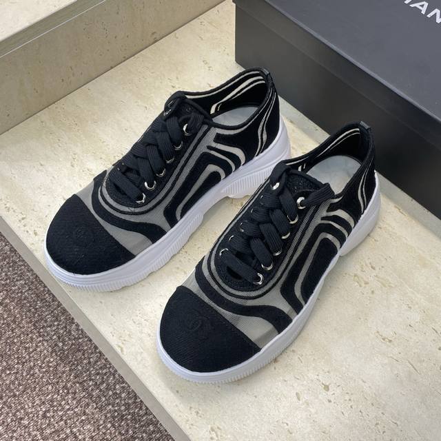 / 工厂p价p Chanel 香奈儿2026早春走秀新款系带镂空网面电绣休闲女跑鞋 小香双C字母Logo厚底圆头运动老爹鞋 材质:鞋面进口环保透气网面电绣工艺+水染