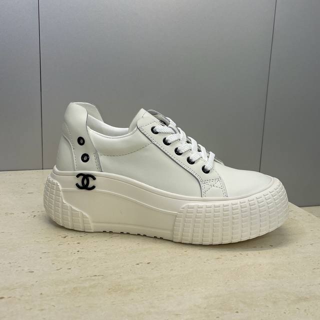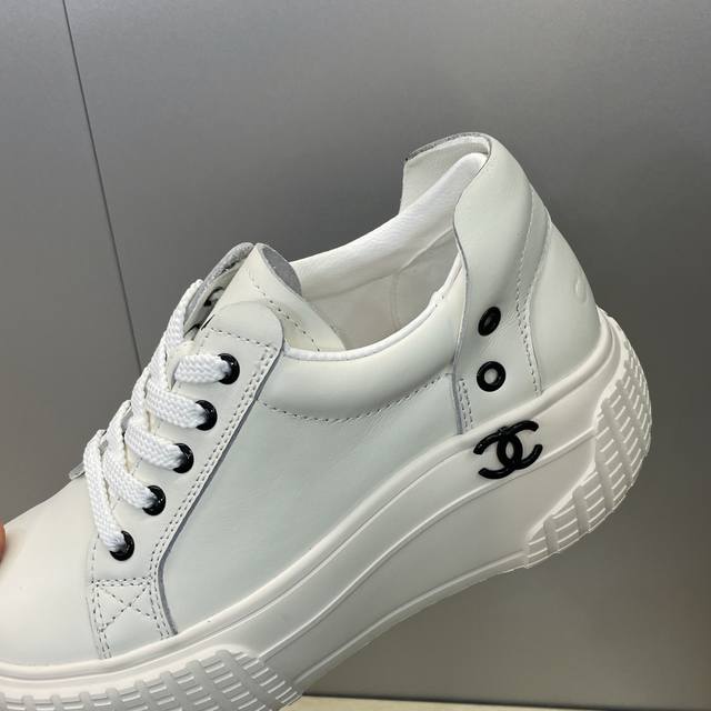 / 工厂P价P DDD Chanel 香奈儿2026早春新款系带休闲女鞋 小香字母Logo五金扣厚底圆头拼色运动小白鞋 DDD 材质:鞋面进口环保小牛皮+水染羊皮内