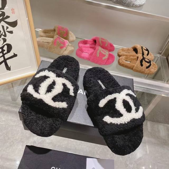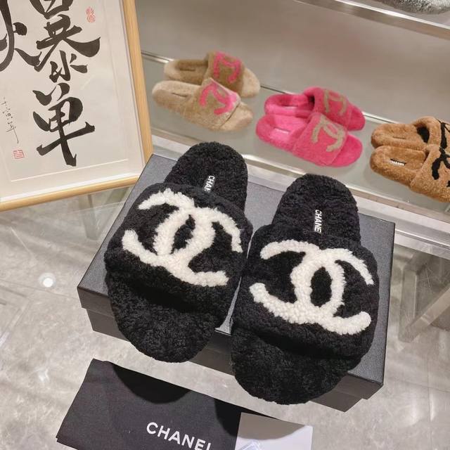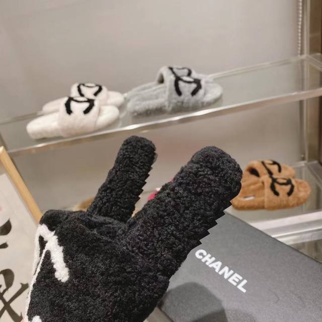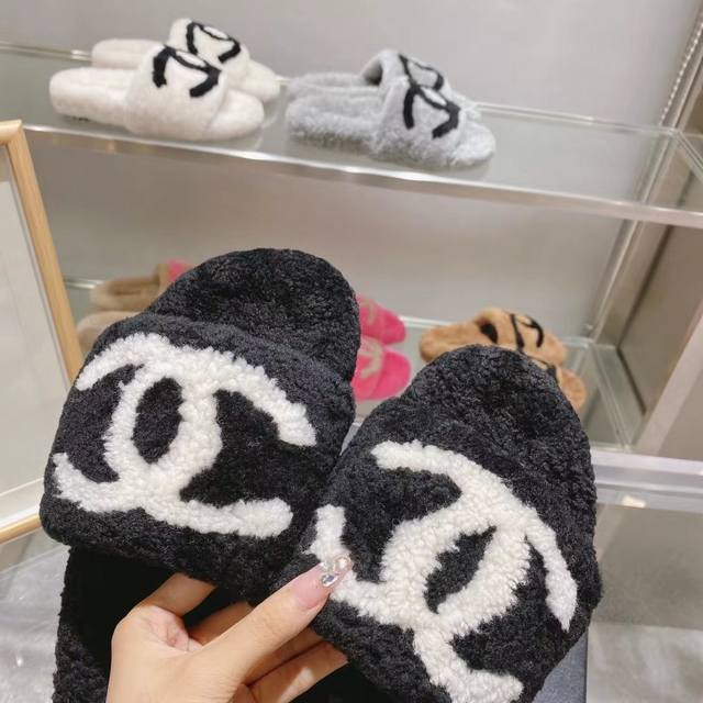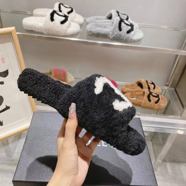 / 工厂p出 香奈儿厚底懒人时尚、优闲风系列潮款毛拖 1:面料:真皮羊羔毛 2:内里:真皮羊羔毛 3:垫脚:真皮羊羔毛 4:大底:耐磨防滑橡胶大底 5:码数:35–