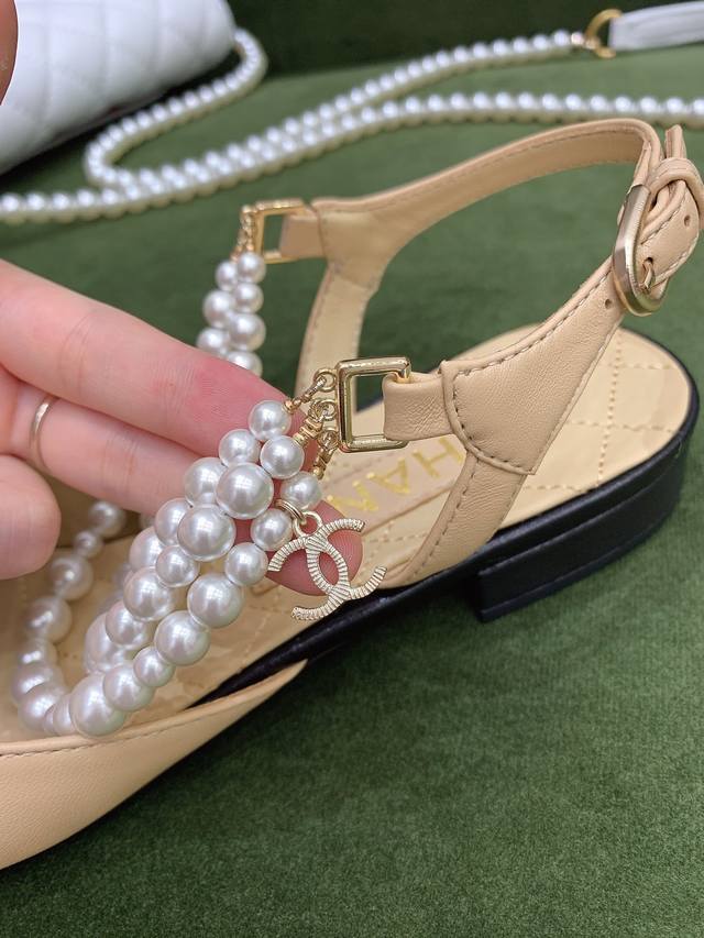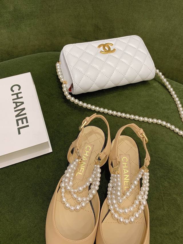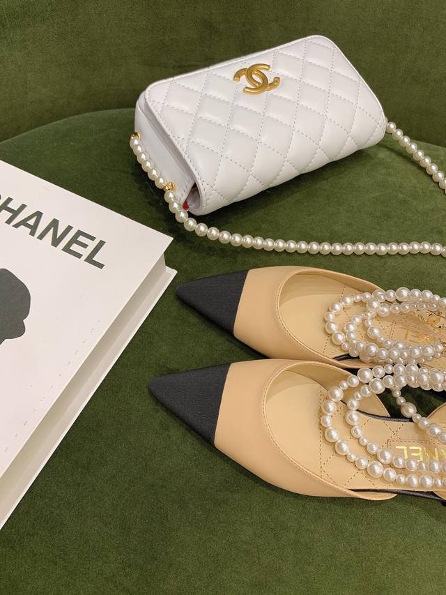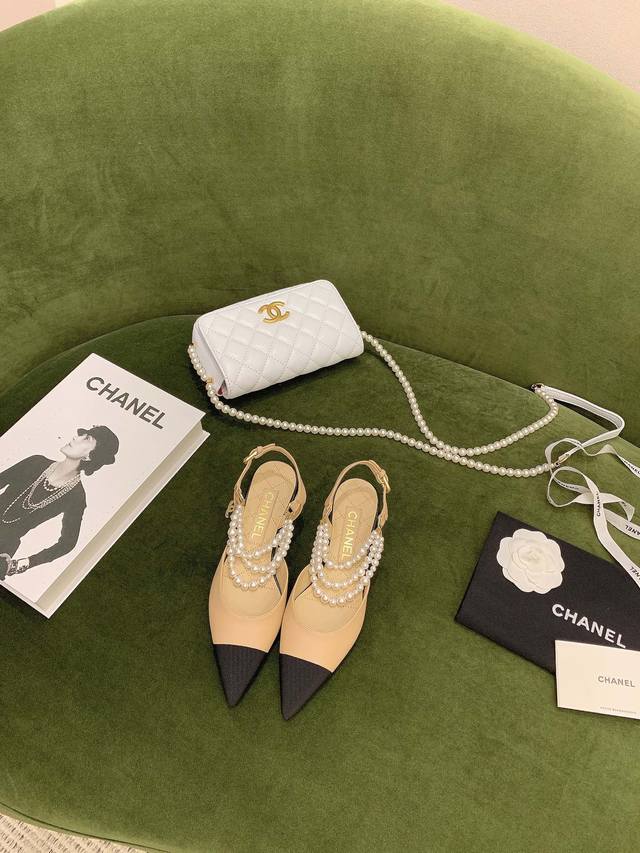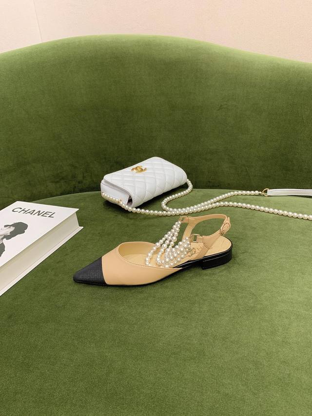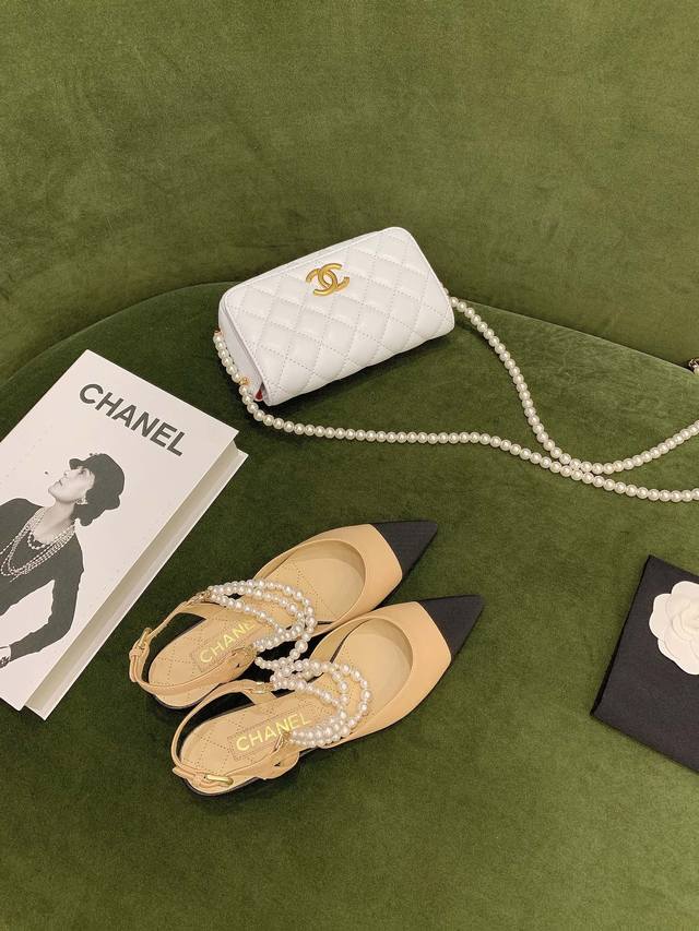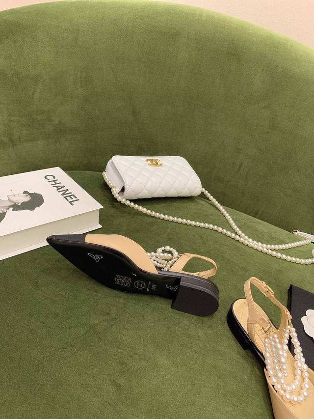 / 平底 高跟 Chane*专柜最新款珍珠鞋 这个神仙鞋子上脚真的不要太好看!简直无敌了!能把脚腕修饰的无敌美 本季最爱的鞋子 没有之一! 鞋面原版超软羊皮 Zp开