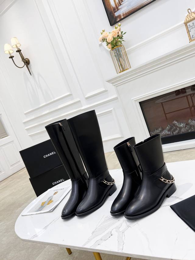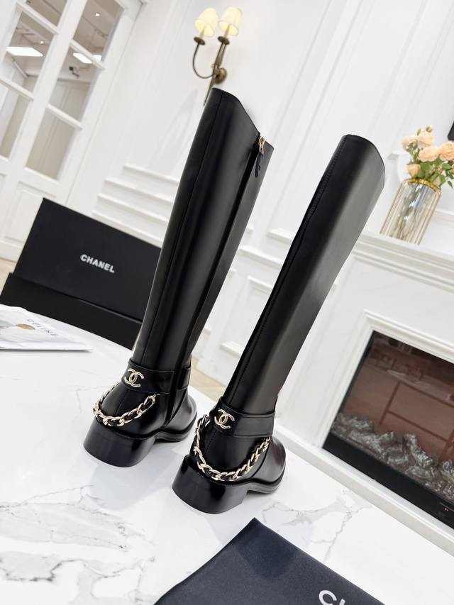 新品 香奈儿2025Chanel官网同步最新款侧拉链高靴 代购级别品质原版材料 2.5公分自带增高瘦腿效果上脚相当百搭秀气 网红街拍款 香奈儿定制Logo手工链条装饰 &鞋面:黑色小牛皮 &内里 垫脚:进口羊皮 &跟高: 2.5 &筒高:15寸 7.5寸 &Size:35–40,41码定做