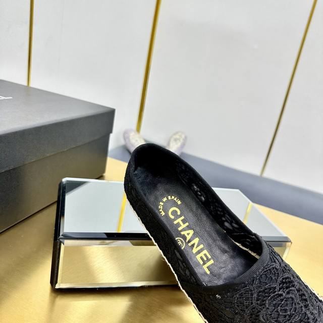 chan E*L2025新配色香奈儿官网同步 渔夫鞋 专柜原版开发 正品工艺 手工折边后缝合 纯手工缝马克线 鞋正中的双C Logo点缀恰到好处 简约大方. 牛仔面小香拖鞋 单鞋 半拖