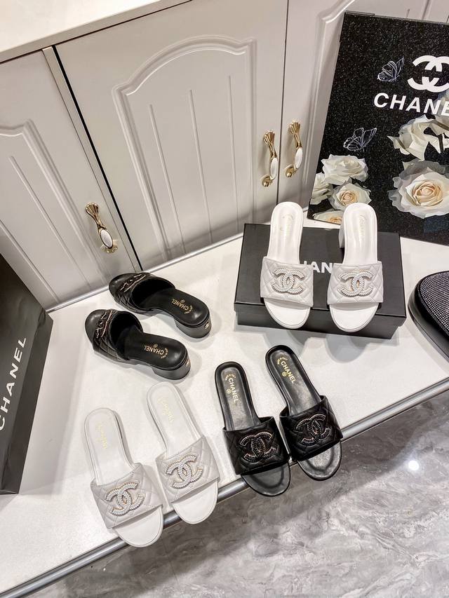 chanel 香奈儿 春夏新款 菱格双C平底拖鞋 休闲凉拖