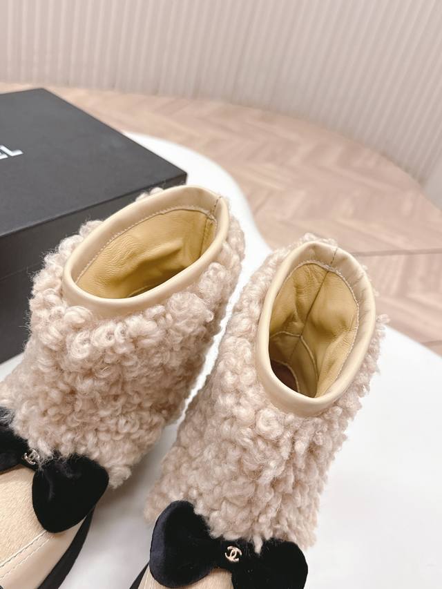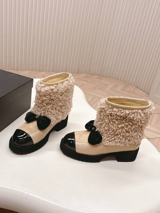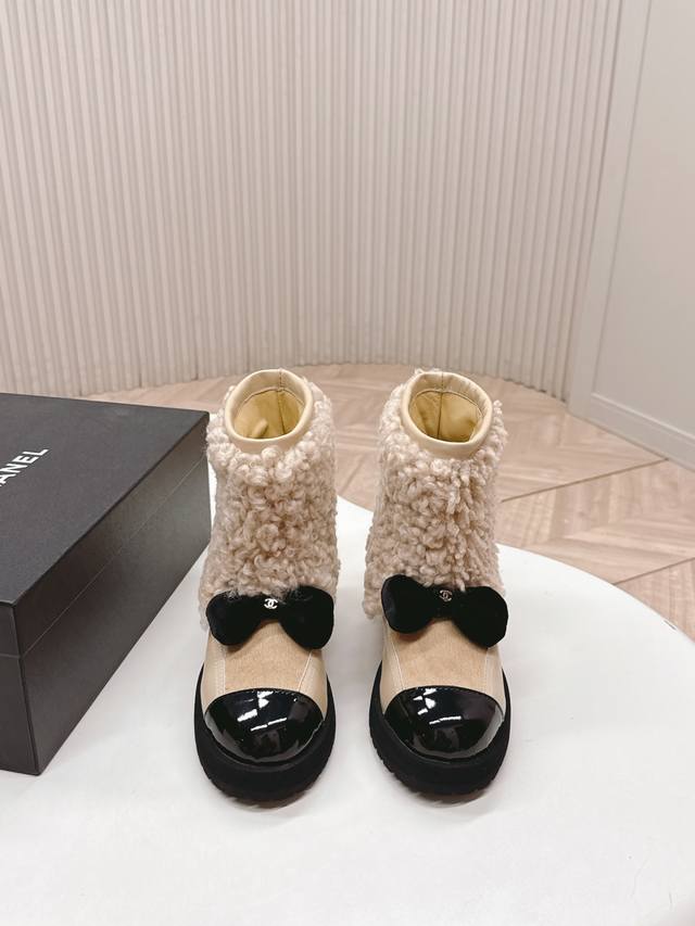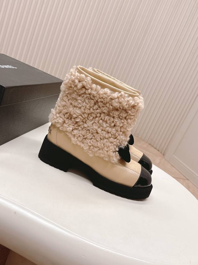 火爆款 香奈儿 Chanel 25N Coco Neige双C蝴蝶结拼色厚底雪地靴短靴 DDD 当圣莫里茨的初雪邂逅巴黎格调 DDD 这款雪地靴便成了冬日的时尚注脚 DDD 品牌标志性双C与灵动蝴蝶结交织 DDD 将经典基因藏进每一处细节,拼色设计碰撞出雪山与都市的视觉对话 DDD 复刻卡尔 拉格斐笔下运动与奢华的融合美学 。厚底设计暗藏心机 既延续复古风潮 DDD 又悄然拉长腿部线条 让你瞬间拥有大长腿 DDD 从滑雪场到街头巷尾 既能适配羽绒服的随性 DDD 也能呼应针织裙的优雅。 DDD 这款雪地靴