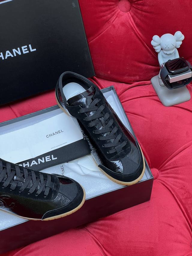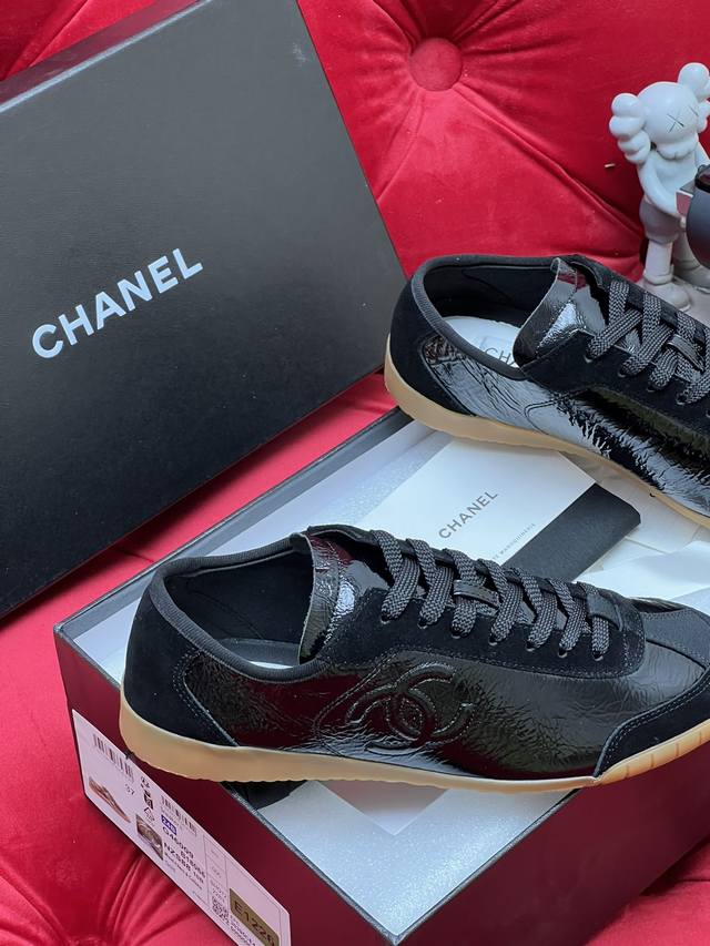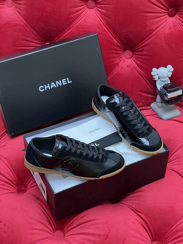独家实拍 顶级版本 小香Chane*24Ss 春季新款休闲系列 顶级系列 非市场通货 欢迎对比 新款拼色休闲鞋 百搭的板鞋 休闲鞋 上脚后属实好搭 酷毙了 原版全套包装 DDD 面料:原版牛漆皮 羊京 DDD 内里:原版定制羊皮 DDD 大底:原版开模大底 DDD Size:35-40 DDD