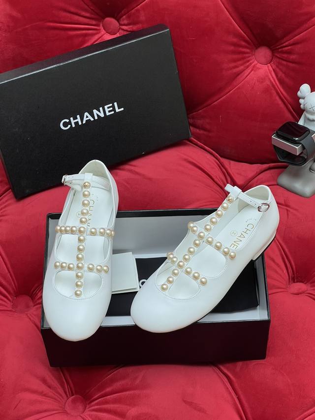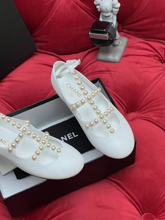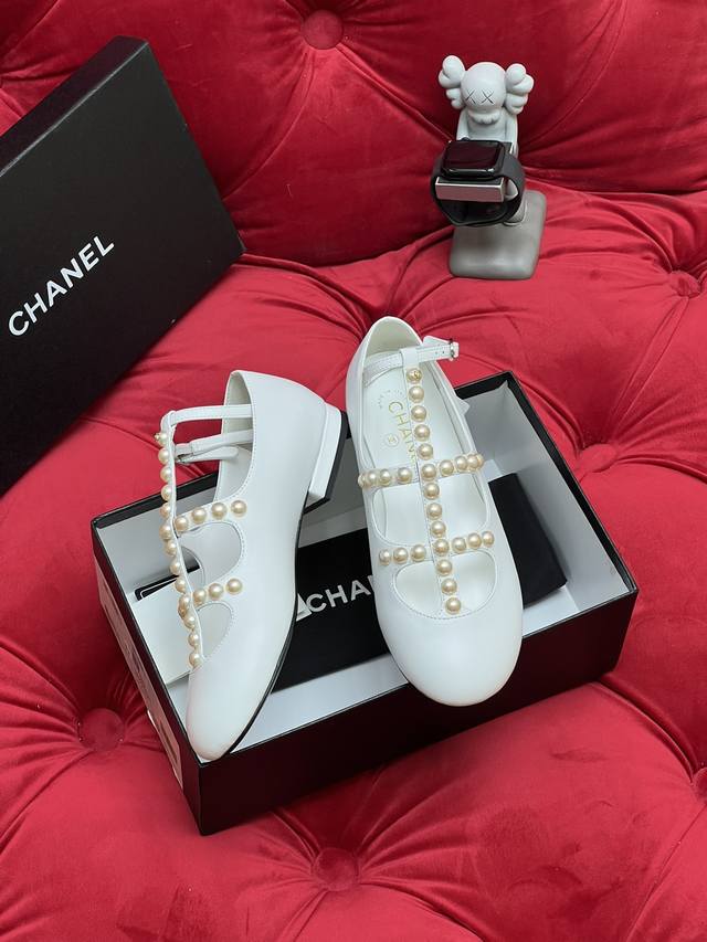 独家实拍 顶级版本 Chane*小香24Ss早秋新品 DDD 米兰走秀双C珍珠玛丽珍鞋 本年度最美玛丽珍鞋 无法抗拒的高级与优雅 秋冬配袜子也都是无敌美 这款玛丽珍鞋自带大小姐风气质 DDD 鞋面:采用原版定制皮料 DDD 内里:垫脚是混种羊皮 DDD 鞋底:意大利A级真皮大底 DDD Size:35-39 40 41定制 DDD