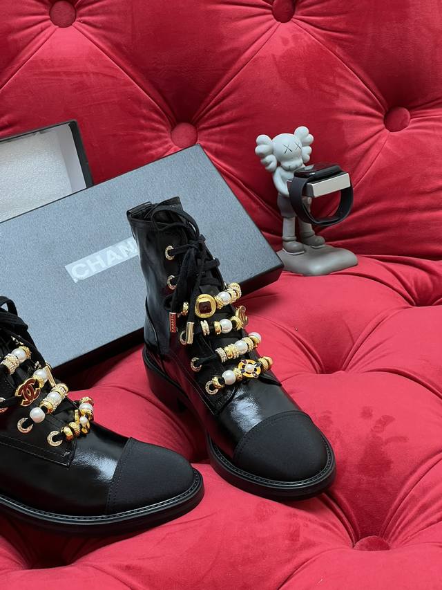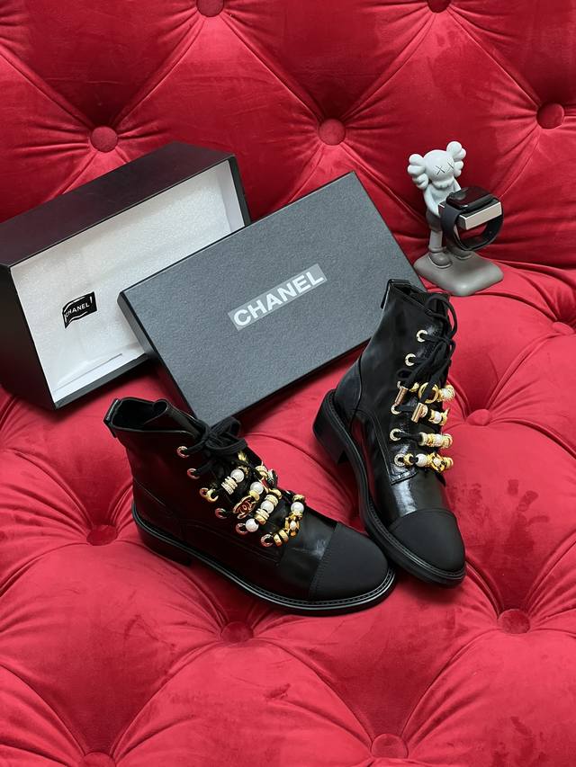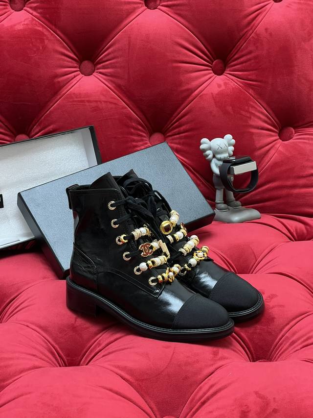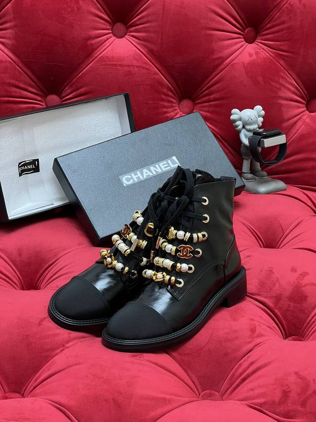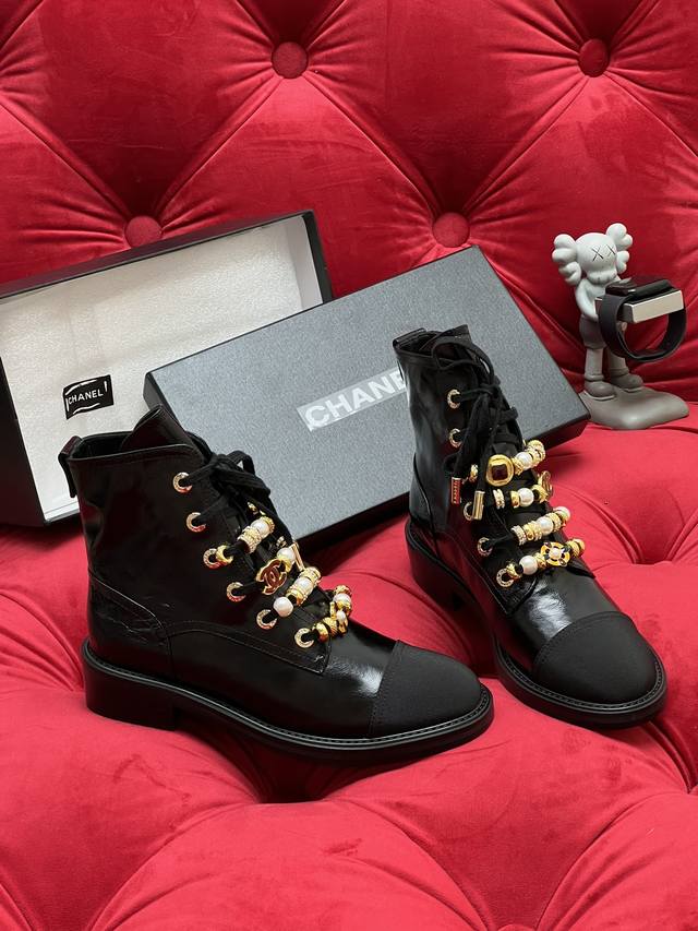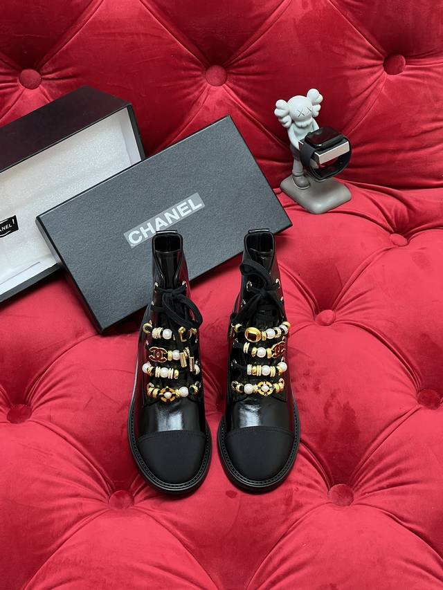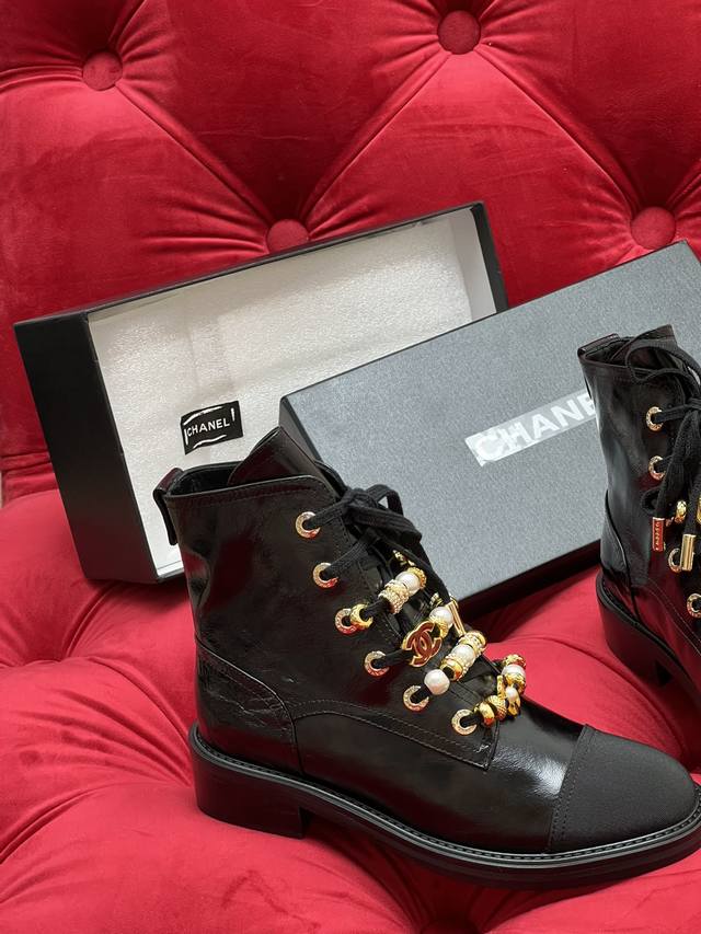 飞机盒+10 Chanel 香奈儿官网最新款靴子 专柜品质 原版材质1:1定制 不惜成本购入正品开发 羊皮与漆皮的绝美碰撞 领口裙边装饰...