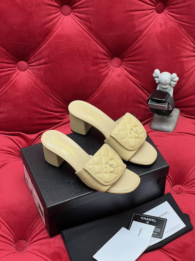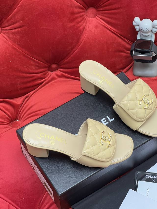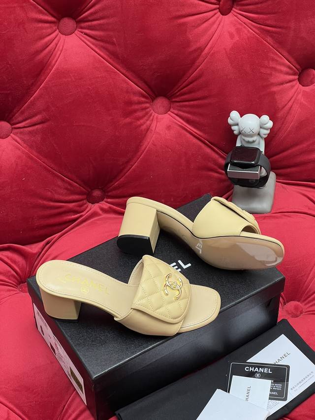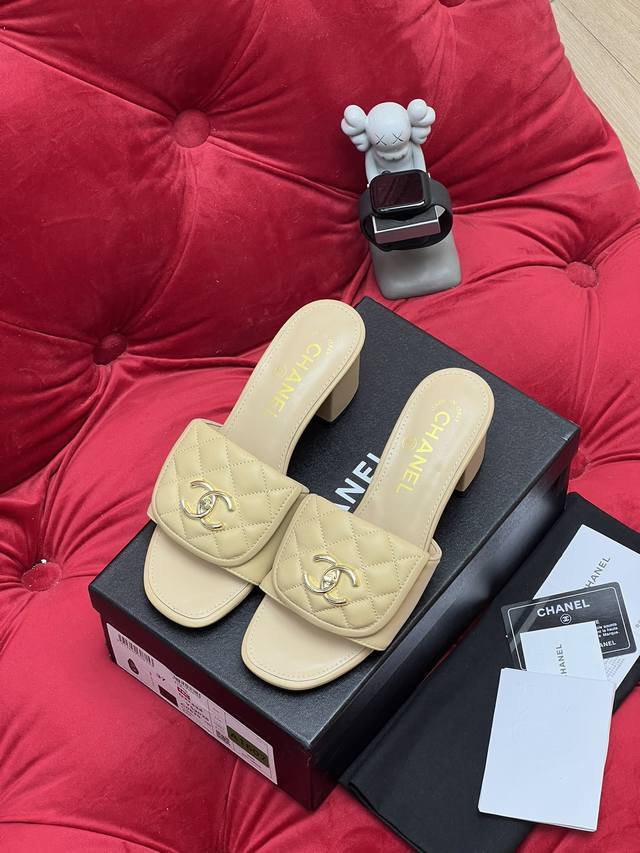 独家实拍 高版本 新款Chane* 25Ss早春平底粗跟拖鞋系列~小香家新款最好看的拖鞋 闭眼冲~圆尖头设计完全不挑脚型 鞋面:进口丝绒 小羊皮 内里:进口羊皮