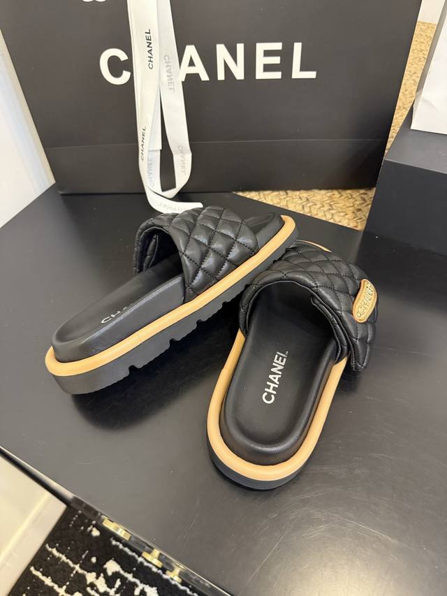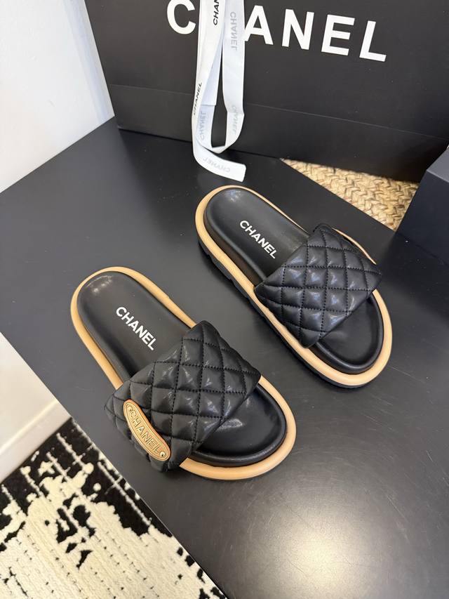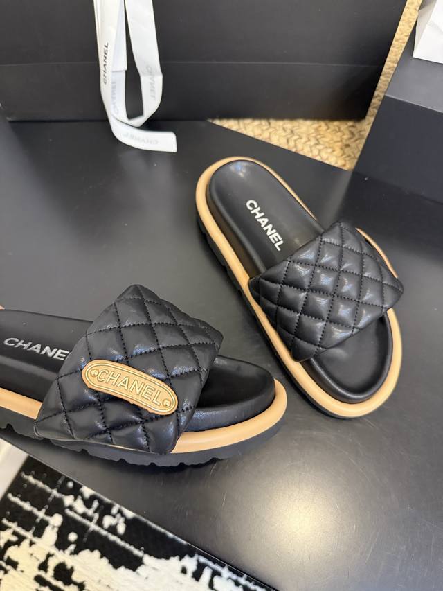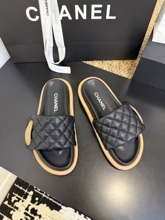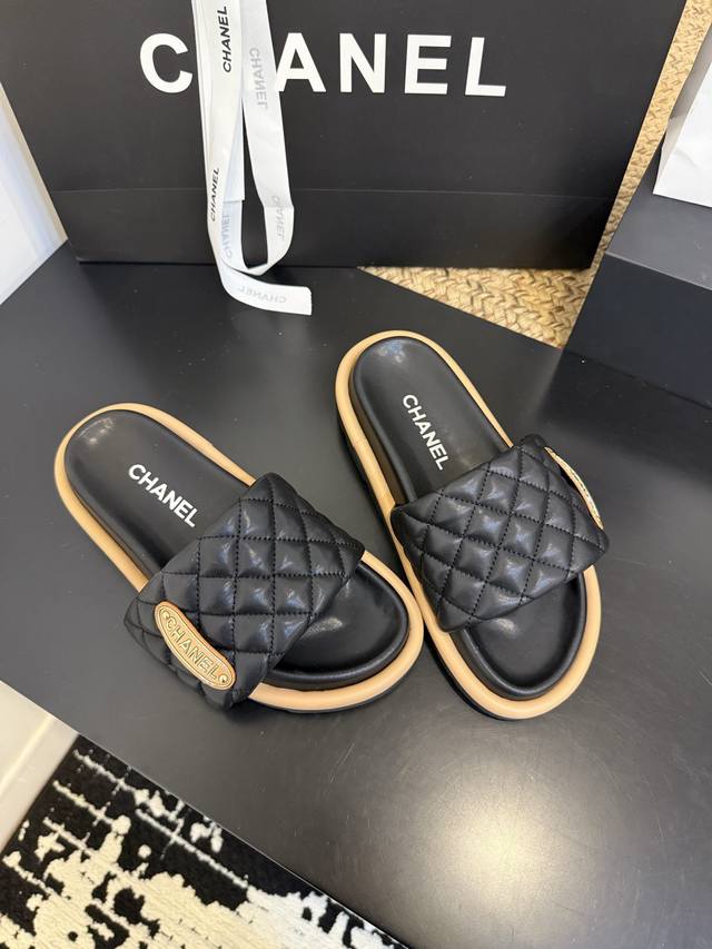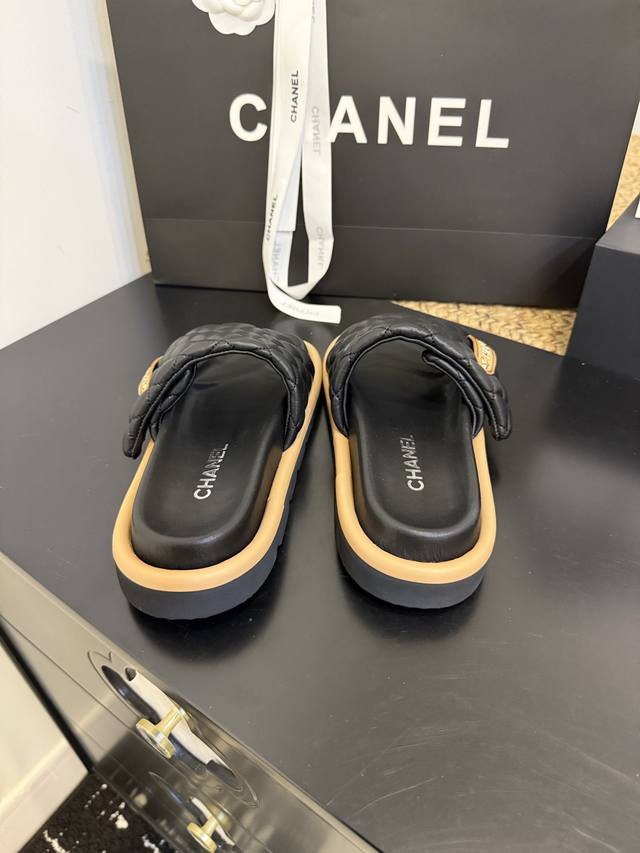 Chane*|小香春夏新品 粗跟链条字母拖鞋 香奶奶家一贯的优雅名媛气质 高级感十足!上脚非常Nice~...