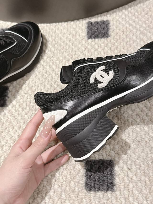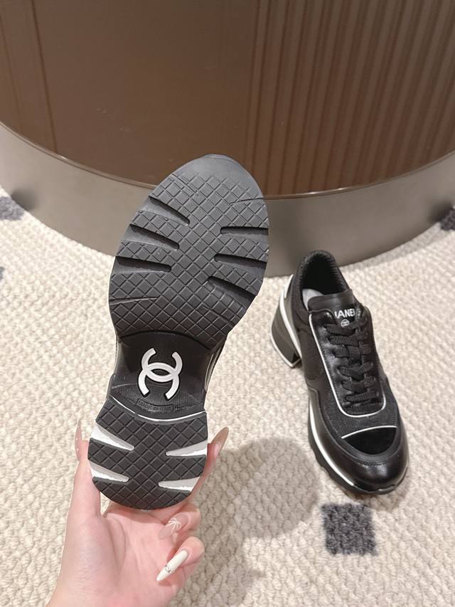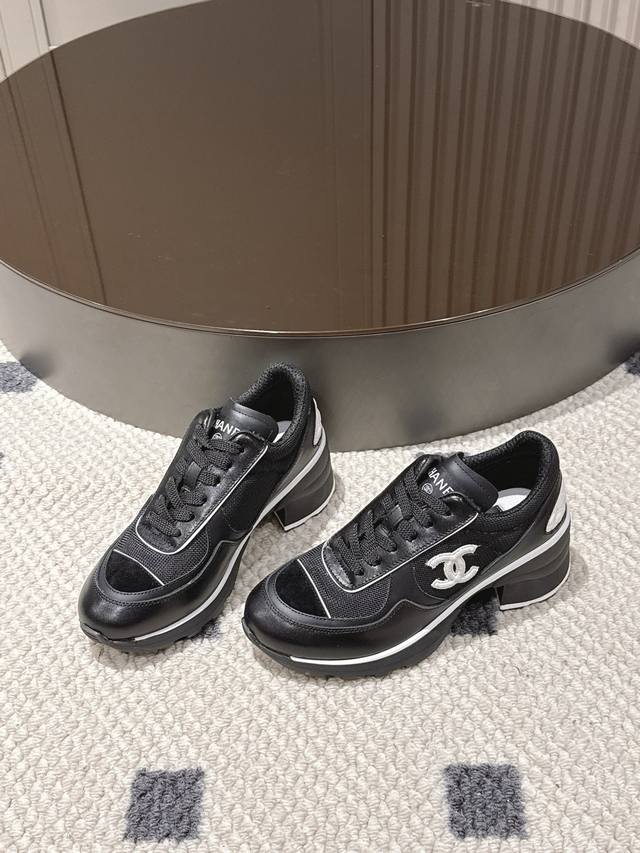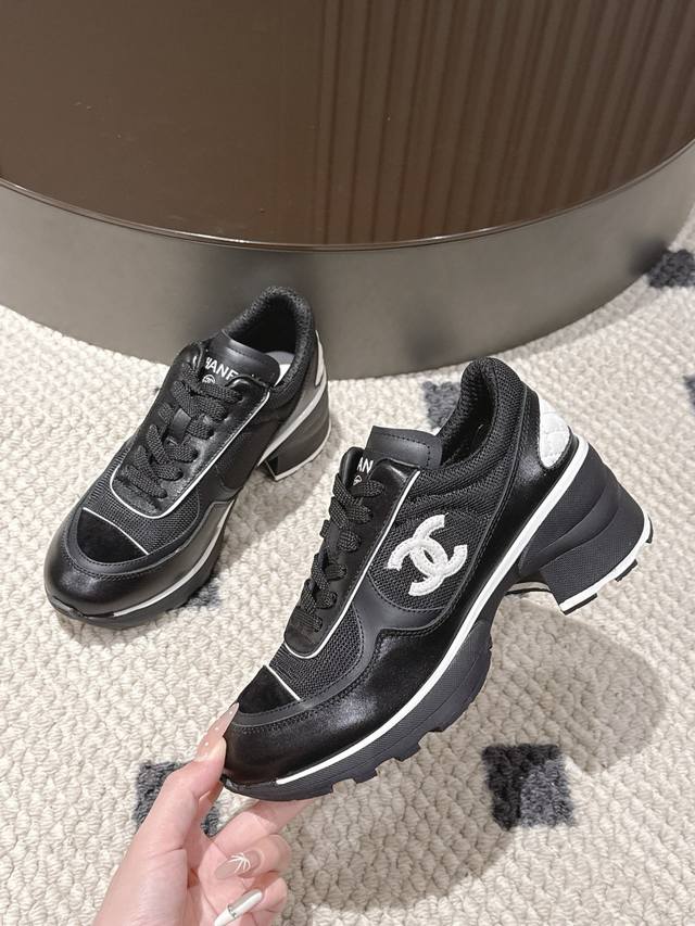 码数35-40。 小香2025高跟运动鞋,经典的黑白配色,延续了香奈儿一贯的优雅与简约,怎么搭都不会出错;少女心满满的粉色款, 温柔又吸睛,为整体造型增添了一抹亮色。标志性的双C Logo 巧妙地融入设计中,精致感瞬间拉满,每一步都踏出香奈儿独有的奢华腔调。 高跟与运动鞋底的奇妙组合,不仅在视觉上拉长腿部线条,让双腿显得更加修长,还保证了行走的舒适度, 打破了时尚与实用之间的界限。不管是搭配休闲的运动套装,展现活力满满的街头风,还是配上精致的连衣裙,演绎优雅与运动感并存的混搭风,它都能轻松驾驭,成为造型中