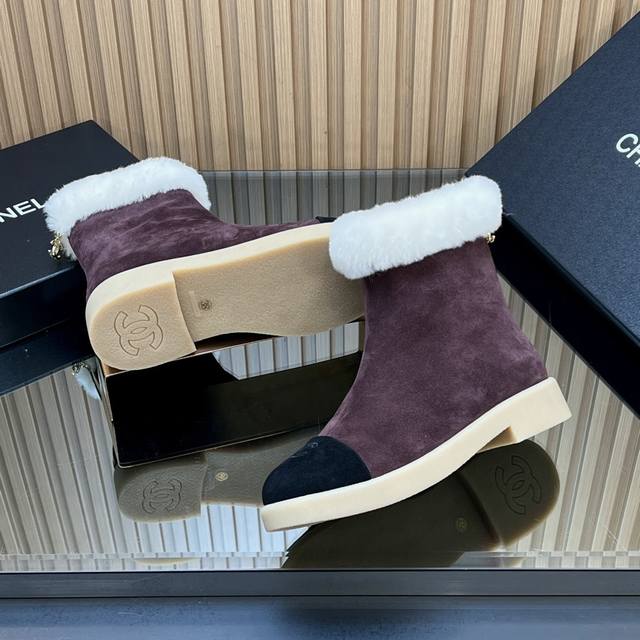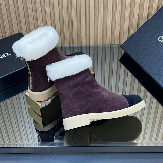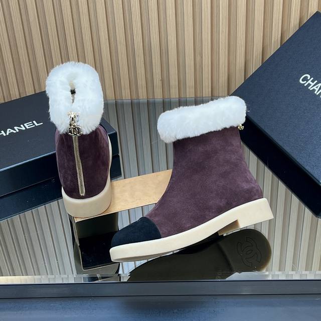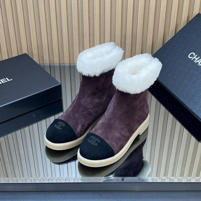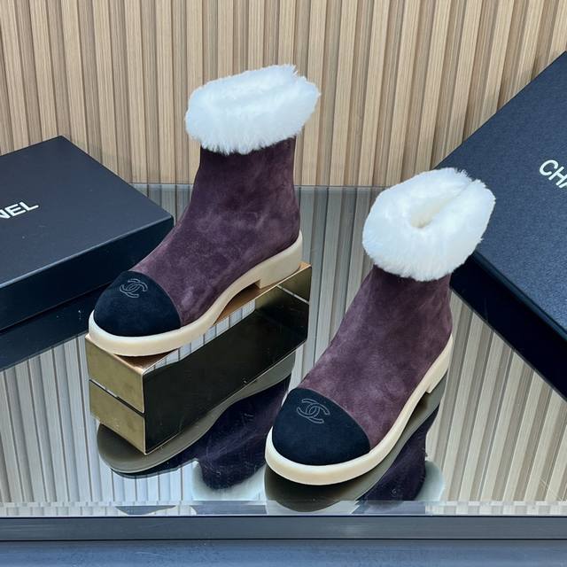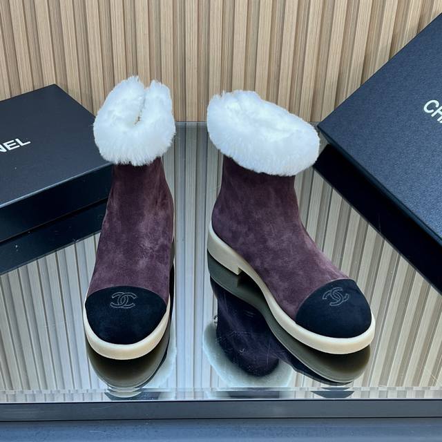 福利价 正确顶级版本。Chanel香奈儿 25K秋冬毛毛雪地靴 厚底超舒服保暖 羊毛拖鞋、单鞋 短靴 流行风纯皮毛一体羔羊毛打造!小香Lg超温暖的感觉,穿上仿佛