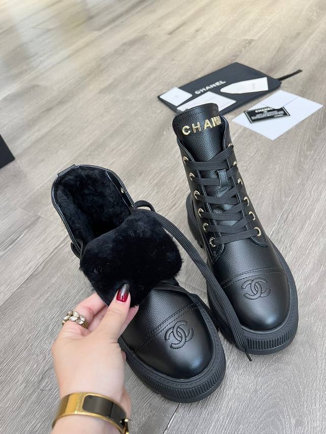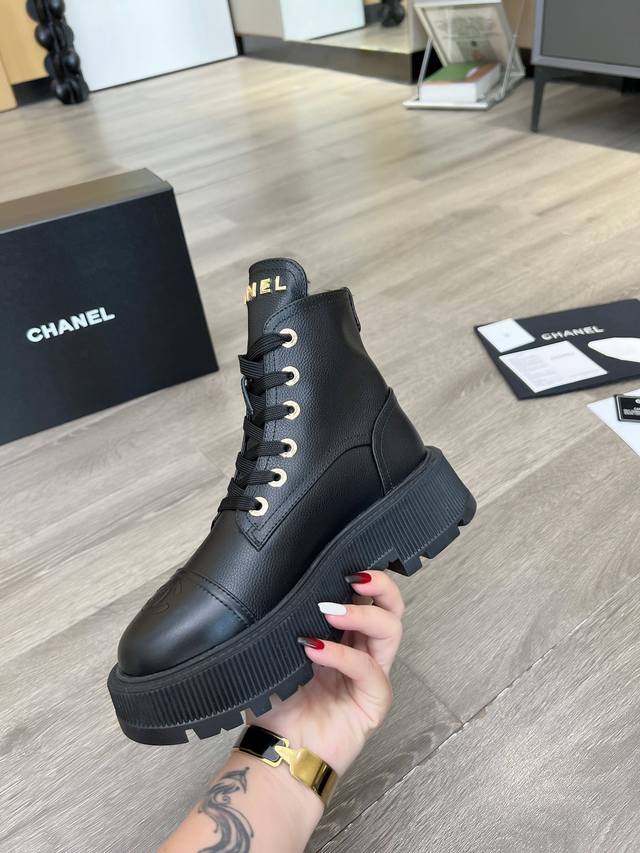 / 秋冬新款Chanel 香奈儿 踝靴原版开模 绑带设计穿脱超级方便,鞋头Logo电绣 鞋舌也是品牌Logo 面料:牛荔枝纹 内里 垫脚:真羊里 采用超轻橡胶防滑耐