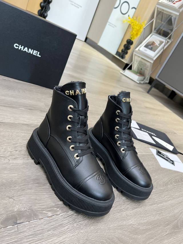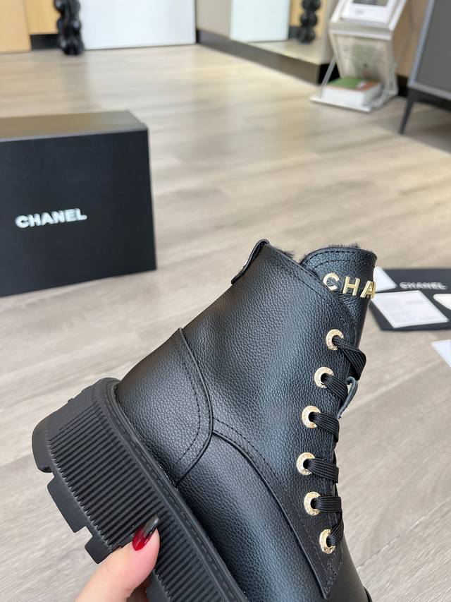 秋冬新款Chanel 香奈儿 踝靴原版开模 绑带设计穿脱超级方便,鞋头Logo电绣 鞋舌也是品牌Logo 面料:牛荔枝纹 内里 垫脚:真羊里 采用超轻橡胶防滑耐